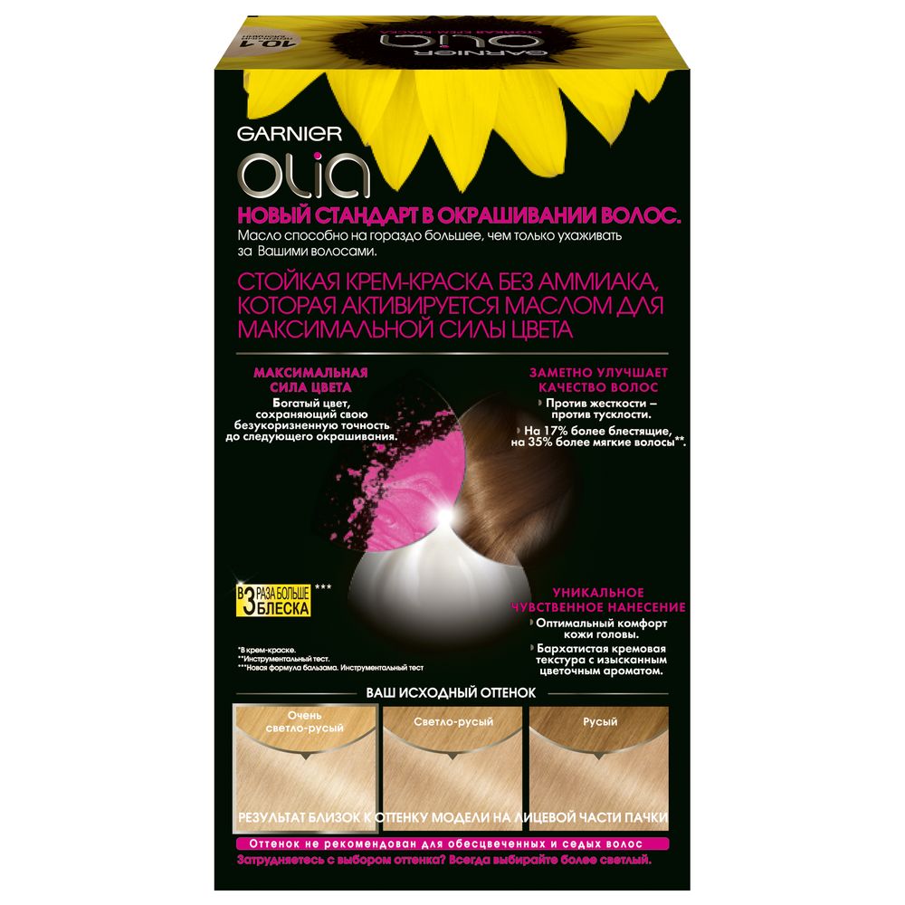 Garnier "Olia" - первая стойкая крем-краска без аммиака c цветочным маслом. Olia обеспечивает максимальную силу цвета и заметно улучшает качество волос. Обеспечивает уникальное чувственное нанесение, оптимальный комфорт кожи головы и обладает изысканным цветочным ароматом.