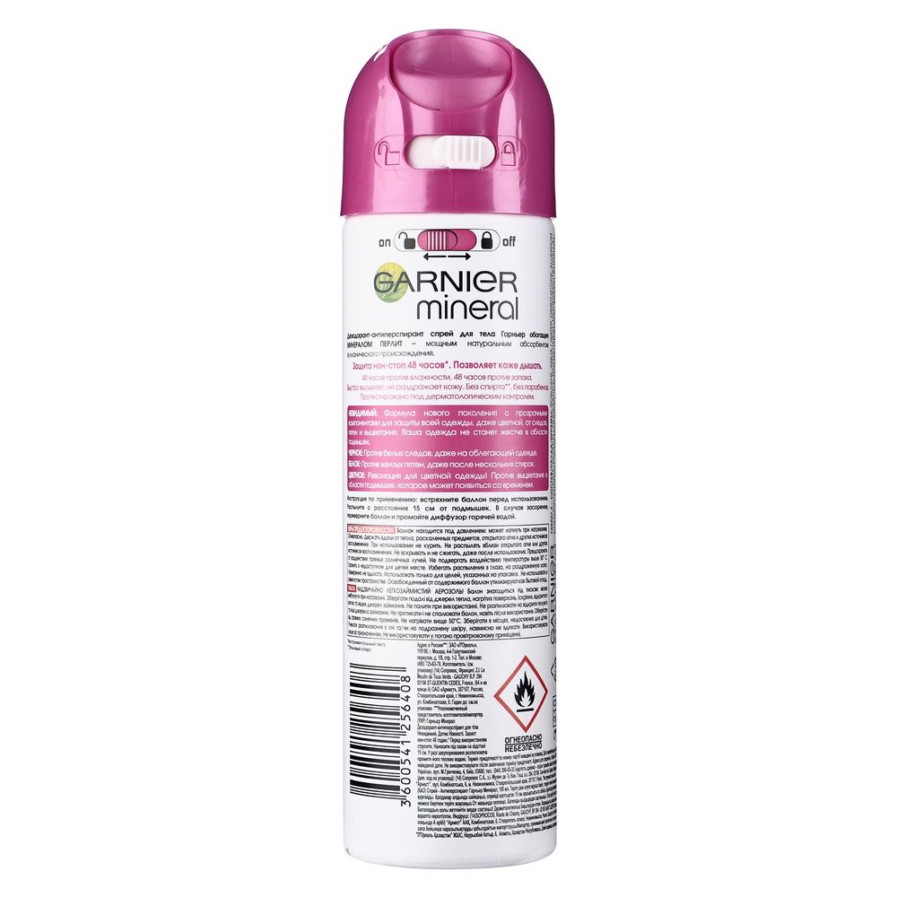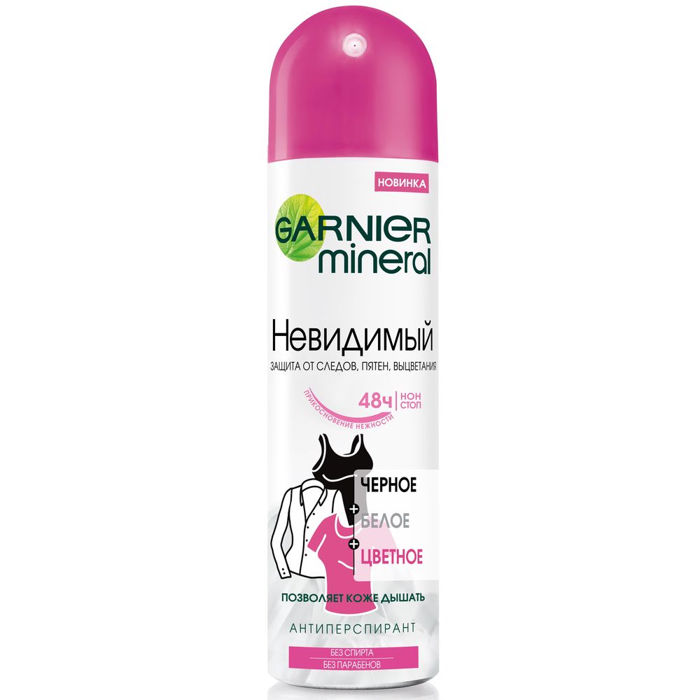 Garnier Дезодорант-антиперспирант спрей "Mineral, Черное, белое, цветное" без спирта, с минералом Перлит, невидимый, защита 48 часов, женский, 150 мл