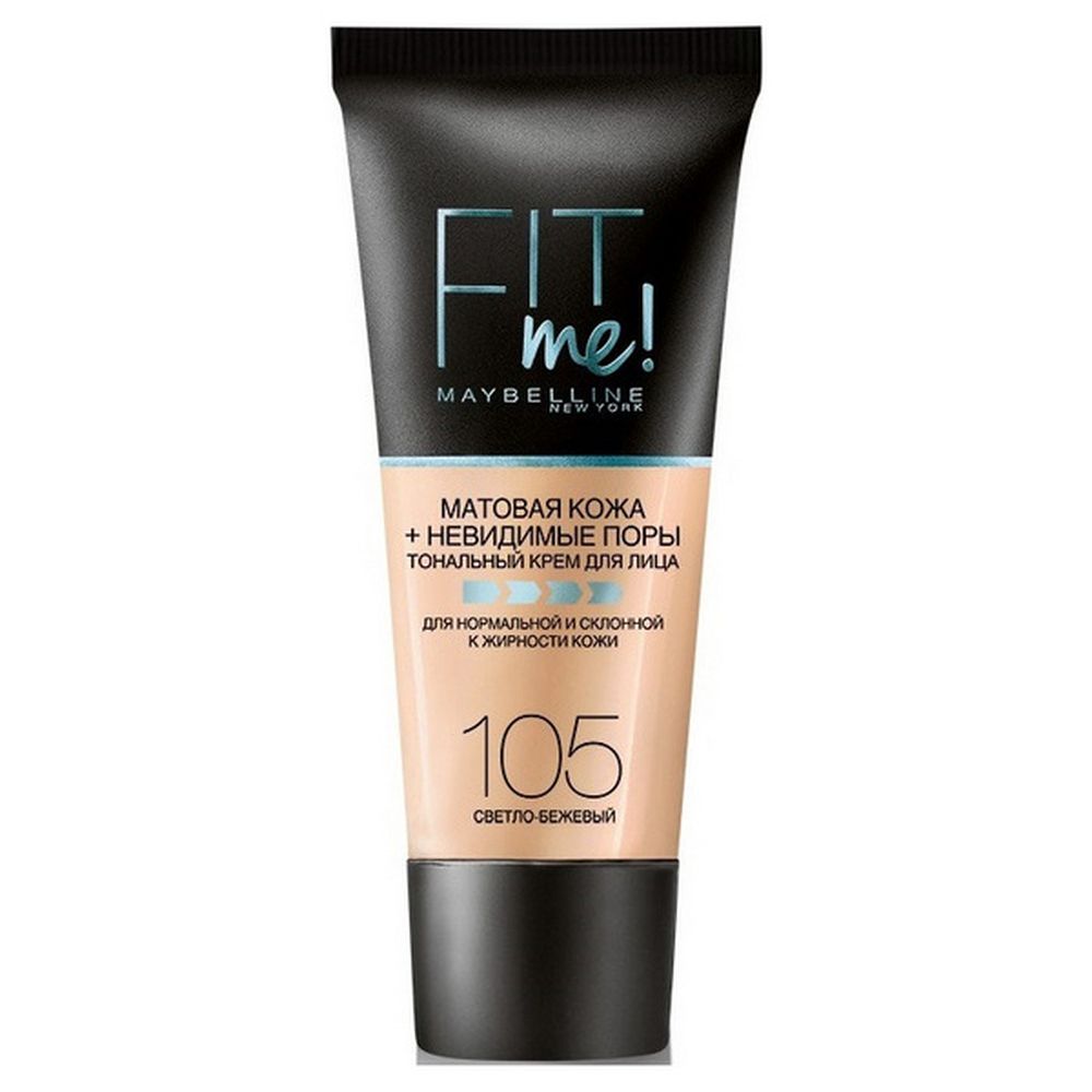 Maybelline New York Тональный крем для лица "Fit Me", матирующий, скрывающий поры, Оттенок 105, Светло-Бежевый, 30 мл