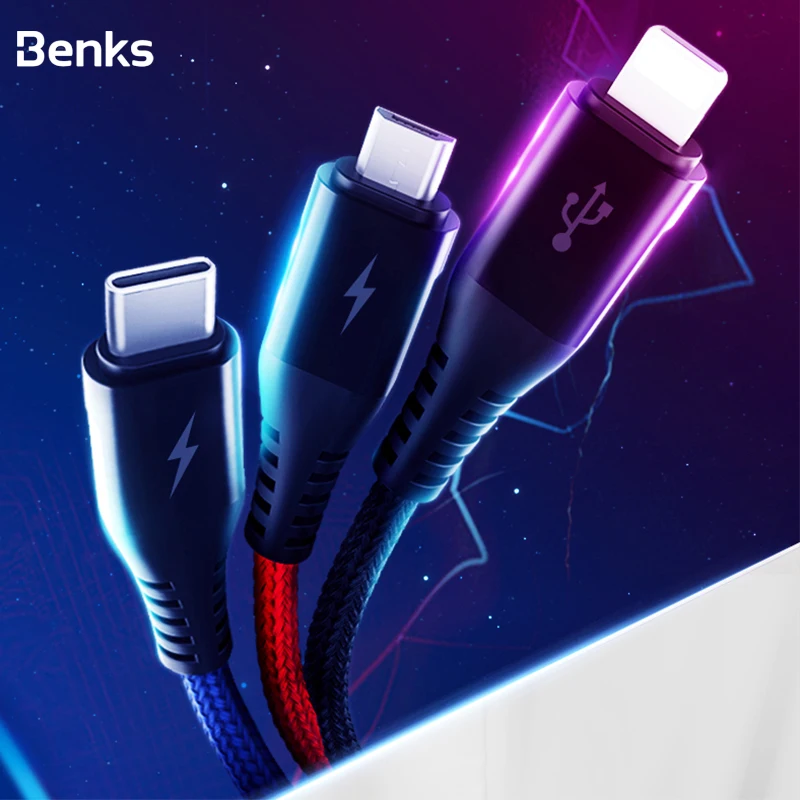 Benks 3A Быстрая зарядка 3 в 1 USB кабель для iPhone 11 Pro XS MAX XR X 7 8 Micro usb type C для huawei Xiaomi 9 телефонный зарядный шнур
