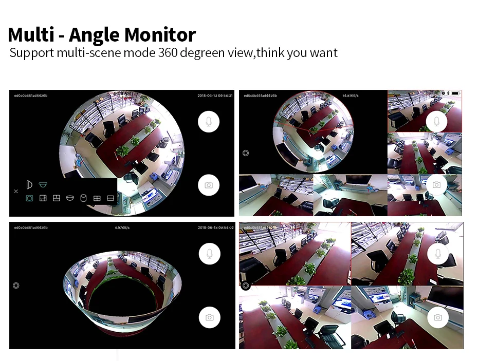 * Легко подключение Wi-Fi * 360 градусов ультра-широкоугольный объектив * Одноклавишная конфигурация и умное Wi-Fi соединение * Поддержка двухстороннего аудио-разговора с вашей семьей в любое время