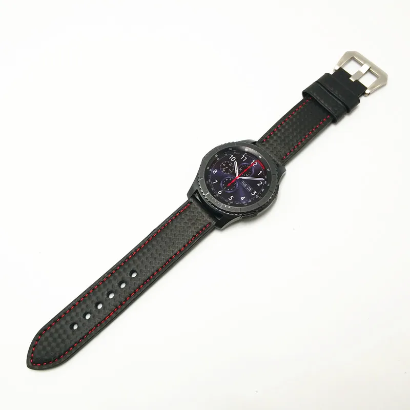 Описание: 1.100% новый бренд высокого качества;2. Легко вставлять и снимать, идеально подходит для ваших часов;3. Изысканное мастерство и стильный дизайн;4. Идеально подходит в качестве подарка для ваших друзей и семьи.5. Материал: зернистая кожа из углеродного волокна + металлическая пряжка6. Размер: 127 + 102 мм7. Ширина: 22 мм8. Цвет: черный, красный, черный, синий, черный, белый9. Подходит для: Samsung Galaxy Watch 46 мм, Samsung Gear S3 Classic frontier, Huawei Watch 2 Classic, Huawei Watch 2 Pro, Huawei GT Watch, Huami Amazfit 1/2 В комплект входит: 1x Ремешок для часов (Часы apple watch в комплект не входят)