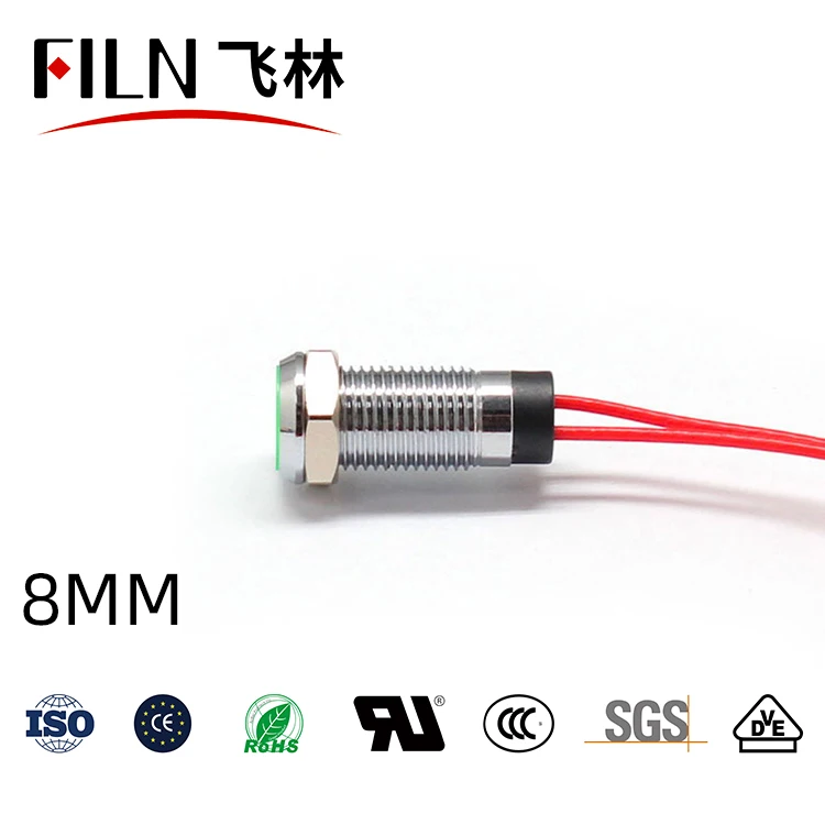 FILN Metal flat head 8mm 12v 24v 220v 110v equipment pilot lights Hot sale led indicator light with wire