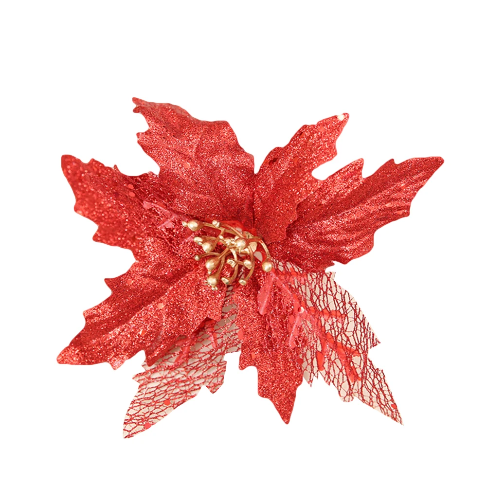 Классический Рождественский цветок, яркий цвет, блестки и полый дизайн.