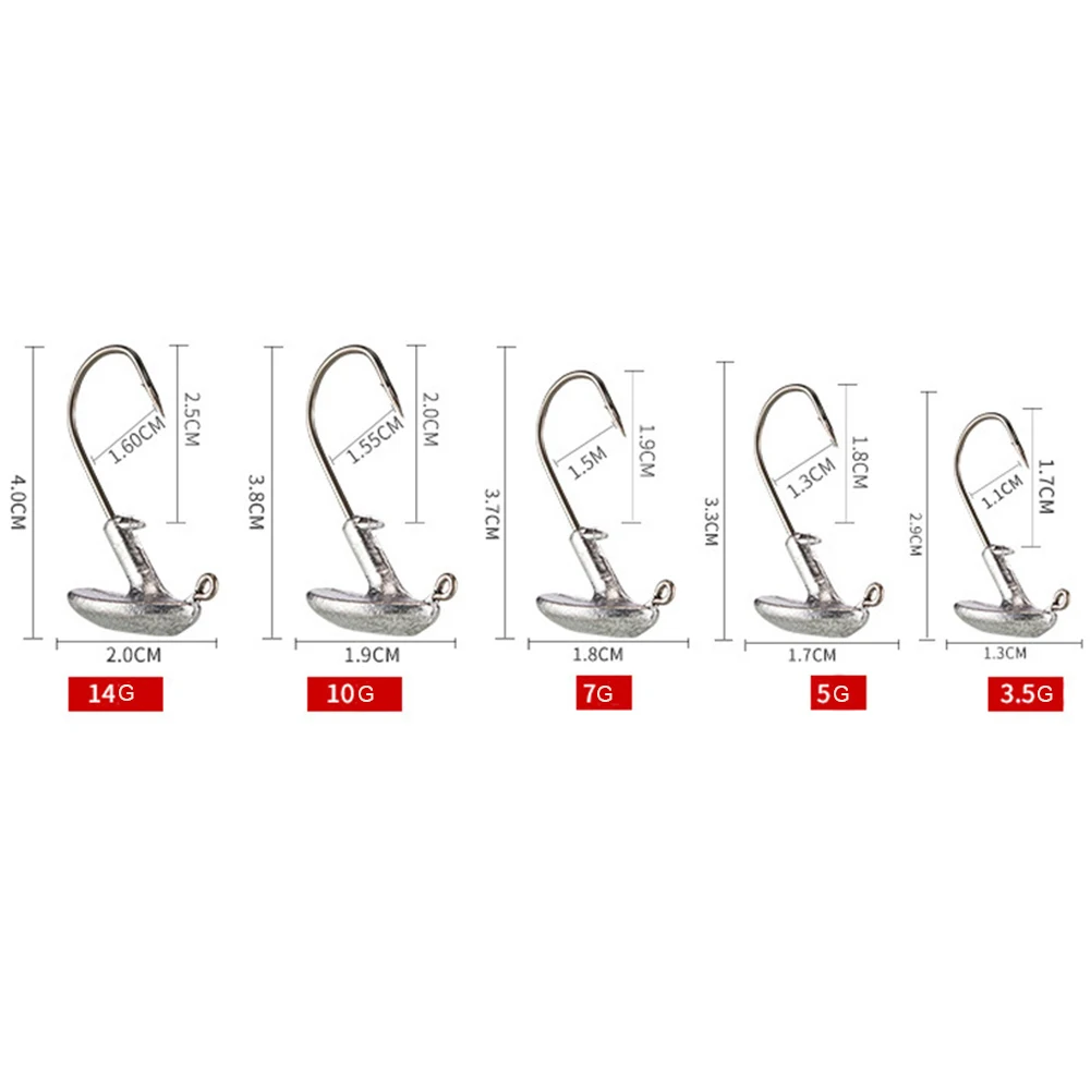5Pcs Fishing Hook 3.5g 5g 7g 10g 14g Strong Lead Jig Head Fishing Hooks Soft Lure Tackle Tool