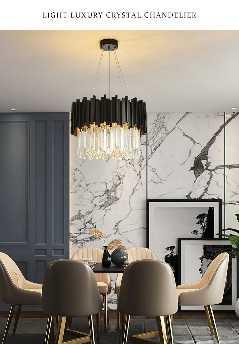 Светодиодный подвесной светильник из нержавеющей стали с золотым кристаллом для столовой