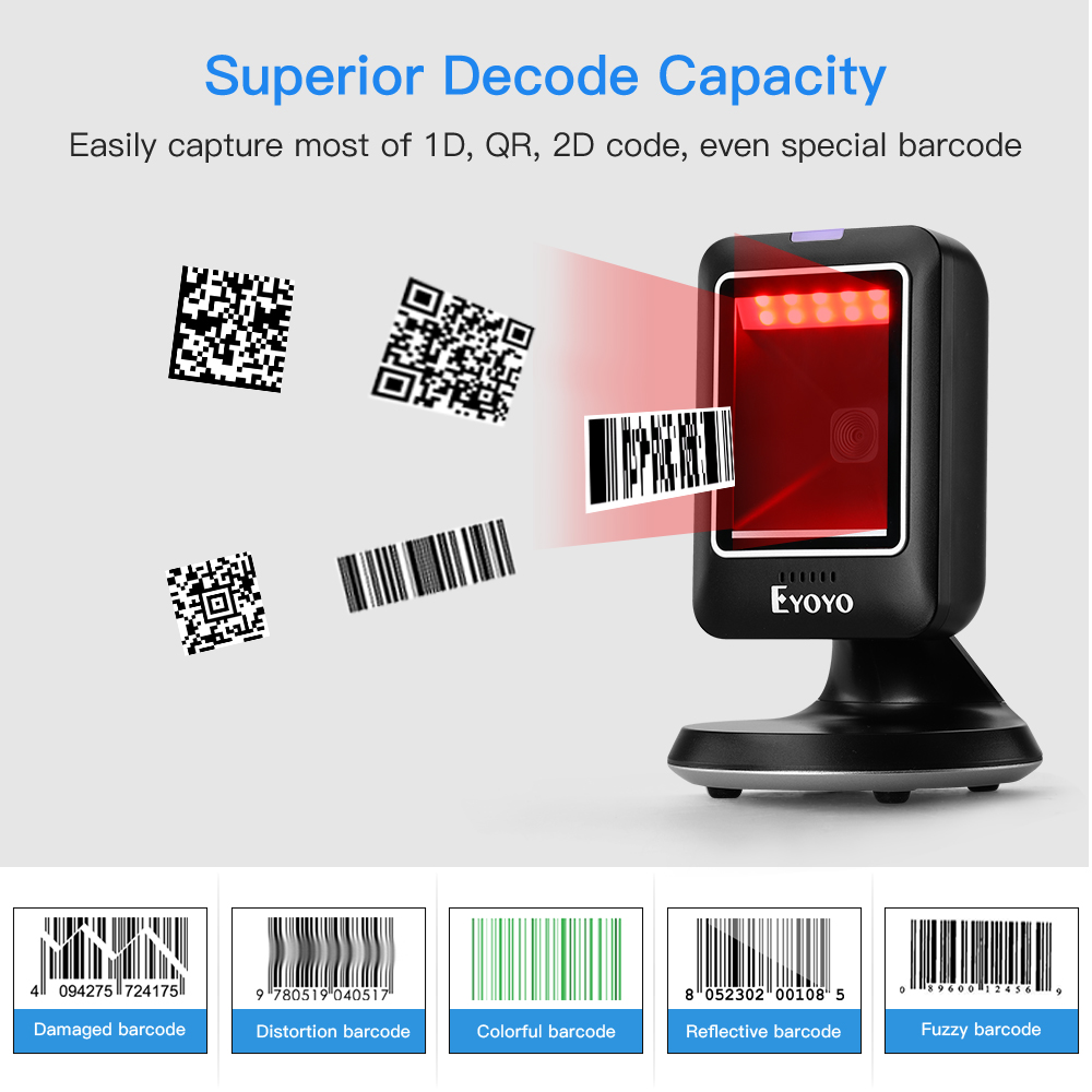 2. Поддержка 1D 2D штрих-кода из бумаги, пленки, мобильный телефон и планшет, экран ПК и т. Д. 3. Совместимость с Linux, Android, Windows XP, 7, 8, 10, MACOS и т. д.