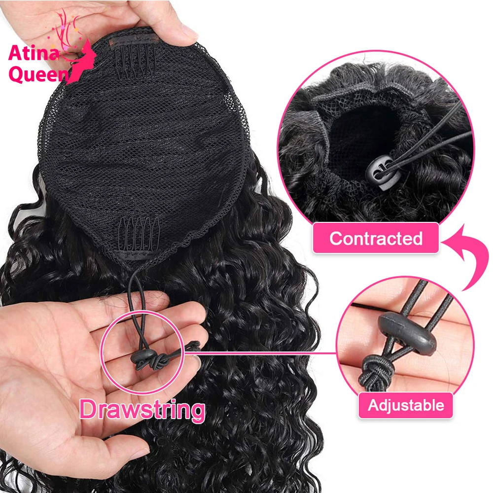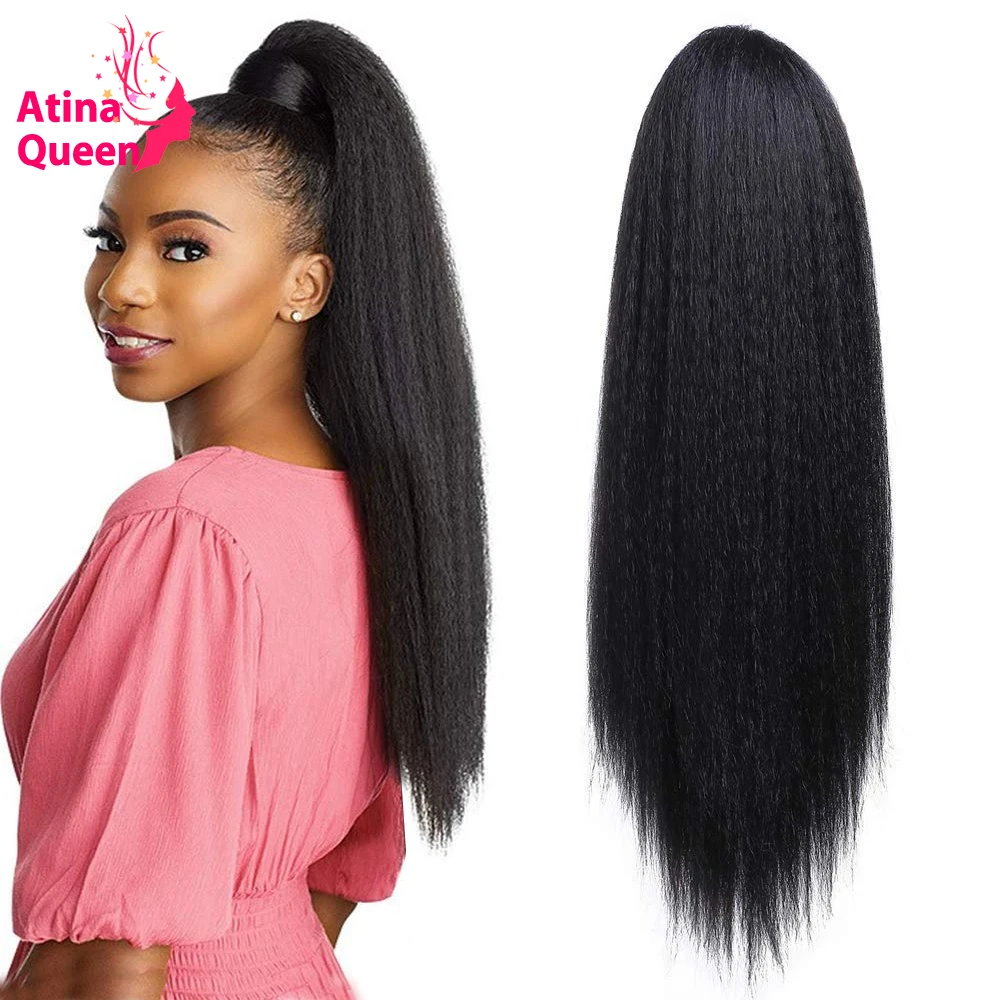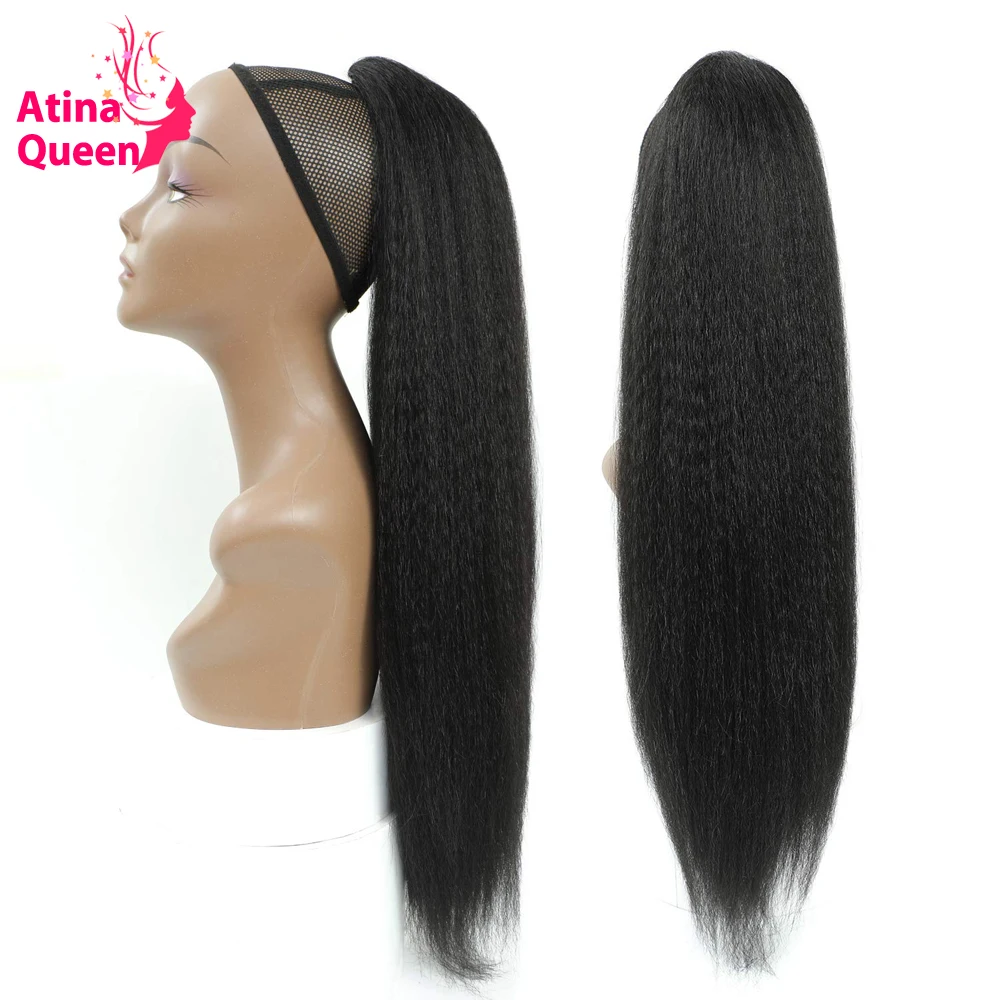 Кудрявый прямой шнурок конский хвост человеческие волосы на заколках для наращивания Натуральные Цветные Волосы Бразильские Remy для афро-черных женщин