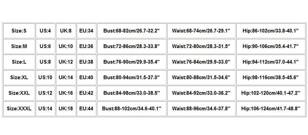 | Размер | США | Великобритания | ЕС | Бюст | Талия | Бедра |