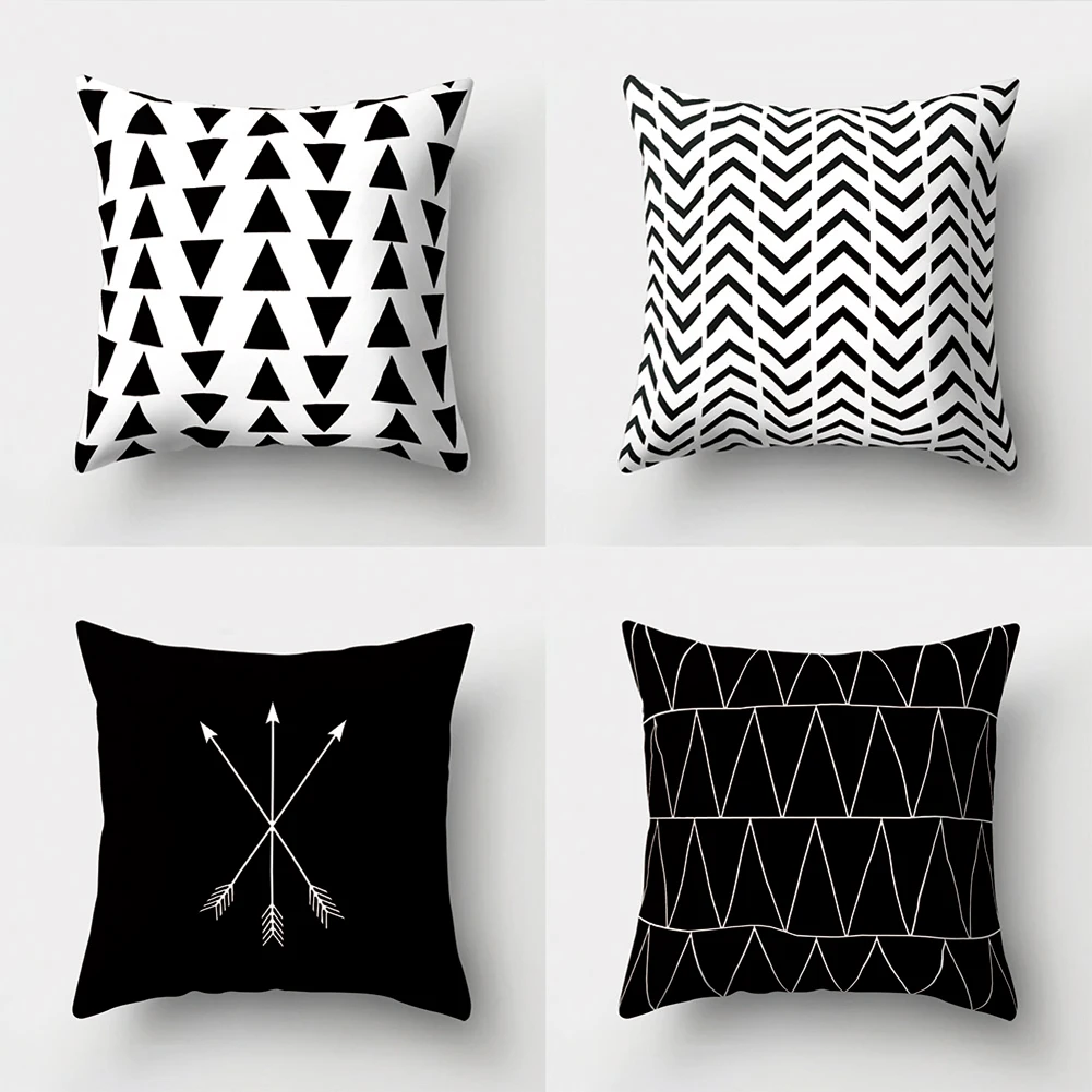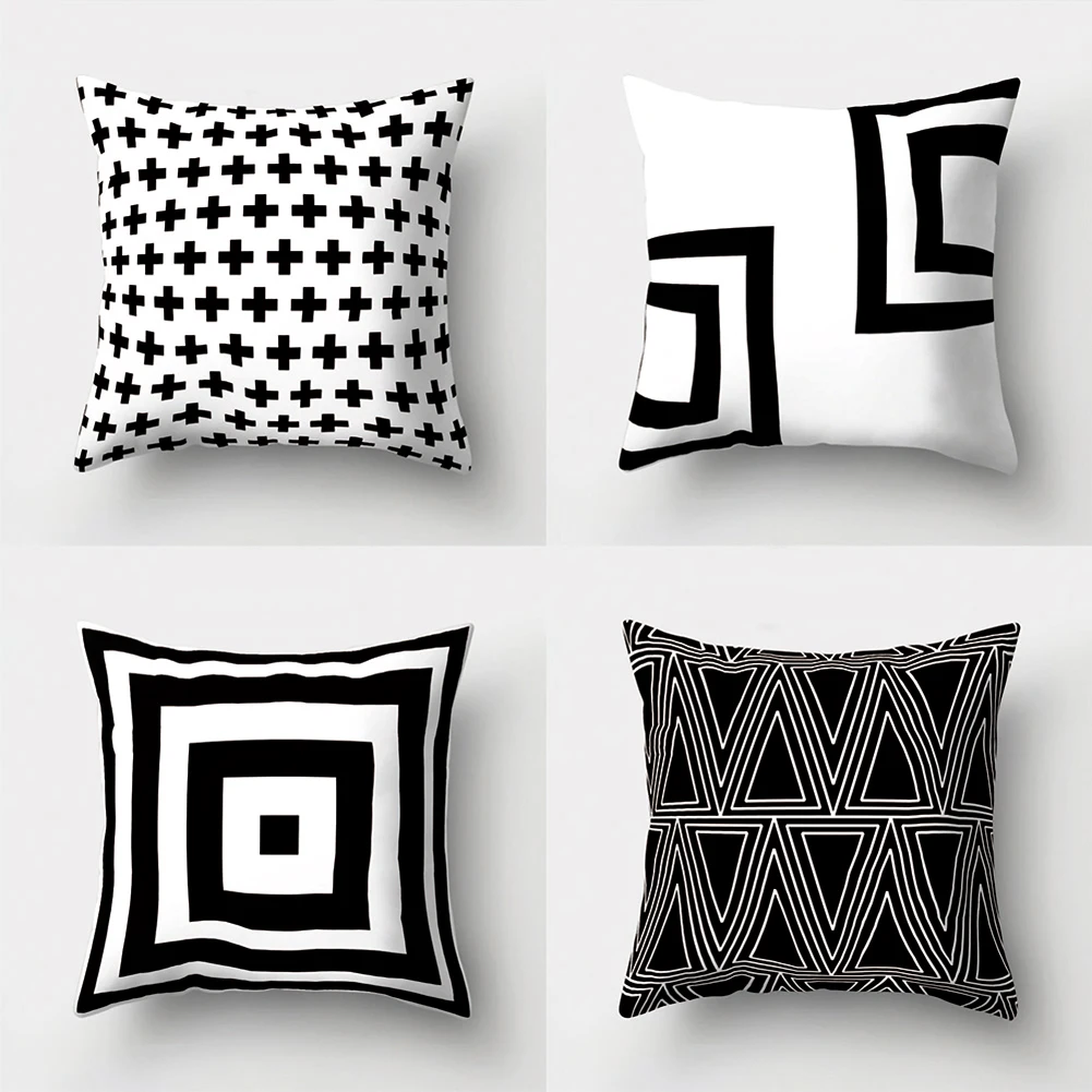 Особенности: черно-белый геометрический узор, квадратная форма, украшение дивана, простой дизайн