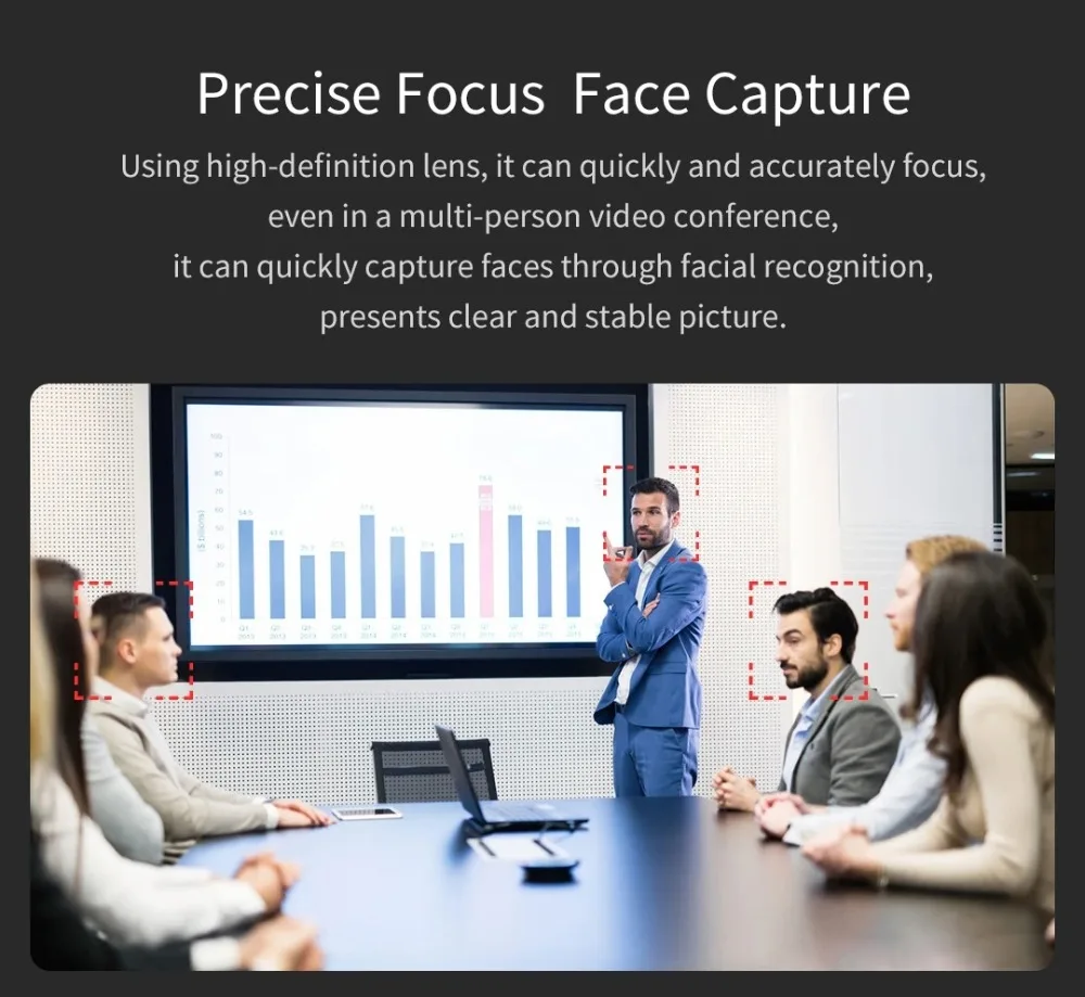 Он может быстро и точно фокусироваться даже на видеоконференции для нескольких человек, он может быстро снимать лица с помощью распознавания лица, представляет четкое и стабильное изображение.