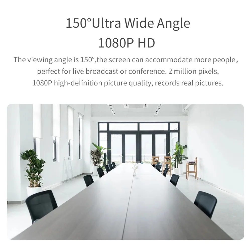 Угол обзора 150 °, экран может вместить больше людей, идеально подходит для прямой трансляции или конференции. 2 миллиона пикселей, 1080P высокое качество изображения, запись реальных фотографий.