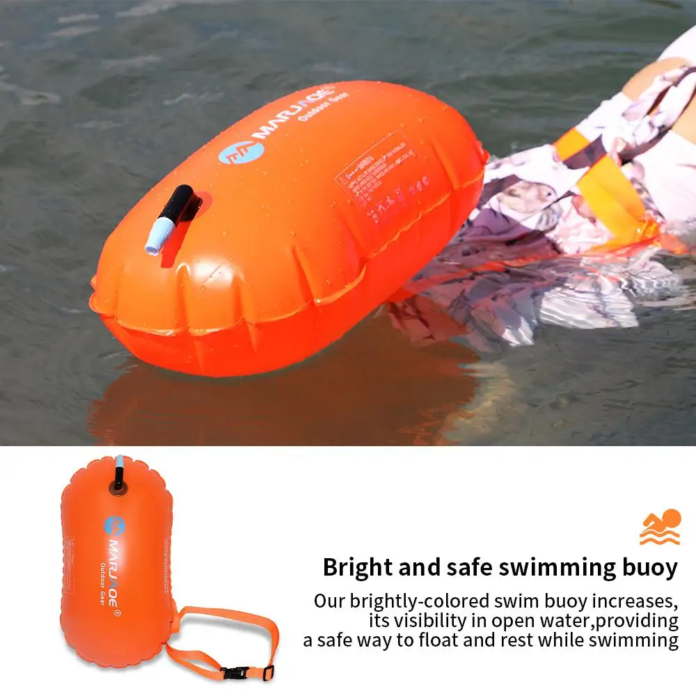 Яркие буй для плавания исключительно заметны в озерах, океанах и других открытых водах, что делает пловца более заметной для спасателей, лодочников, серферов, водных лыж, КАЯКОВ, каноэ и других транспортных средств с открытой водой; привлекательный цвет также может держать опасных морских животных подальше, обеспечивая безопасный способ плавать и отдыхать во время плавания.