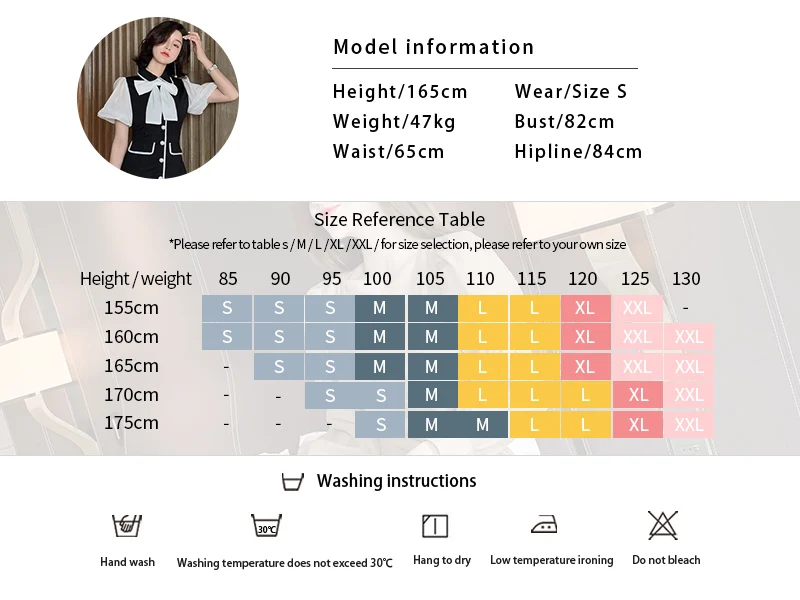 Примечание: 1. Пожалуйста, строго следуйте таблице размеров, чтобы выбрать размер. Не выбирайте напрямую в соответствии с вашими привычками. 2. Все еще не уверены в размере? Мы бы хотели посоветовать, основываясь на ваших измерениях груди, талии и бедер. 3. Размер может отличаться на 2-3 см из-за ручного измерения. Пожалуйста, обратите внимание при измерении. 4. Предложение ручной стирки холодной водой. Это может помочь изделиям сохранить свою форму. 5. Из-за освещения, угла съемки, фотографического оборудования и т. Д. Могут быть некоторые различия в цвете. Пожалуйста, поймите, что цвет зависит от реальной вещи. 6.Если это светильник, окрашенный в цвет, пожалуйста, носите светильник с цветным нижним бельем внутри, спасибо | ||||||