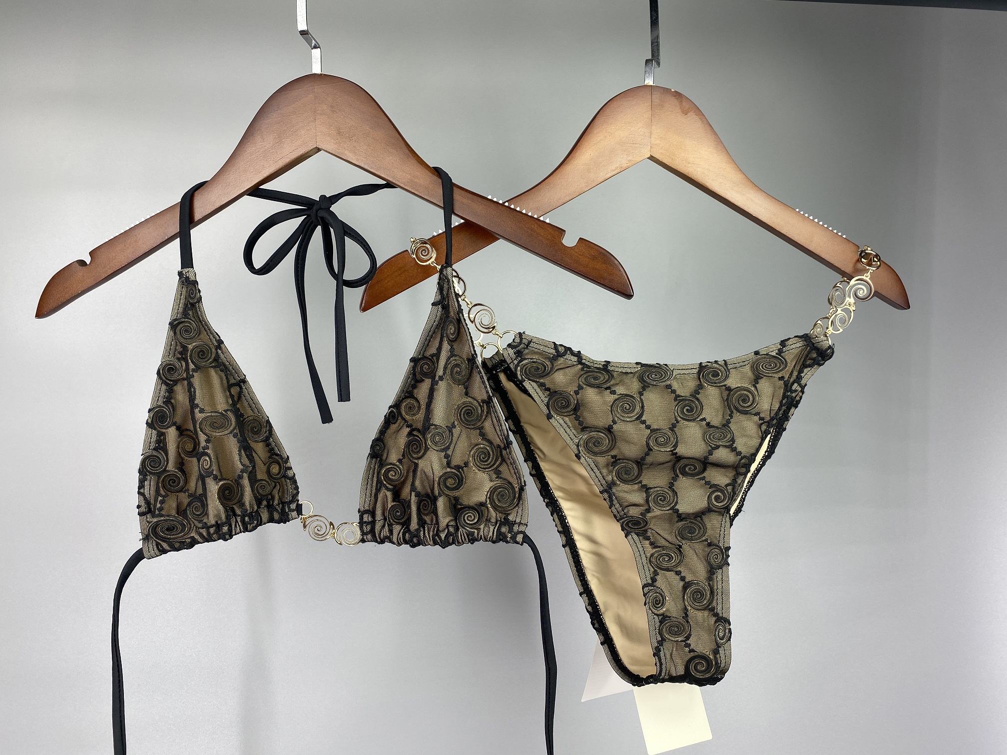 Южноамериканский стиль бикини сексуальный черно-белый цвет галстук тканый