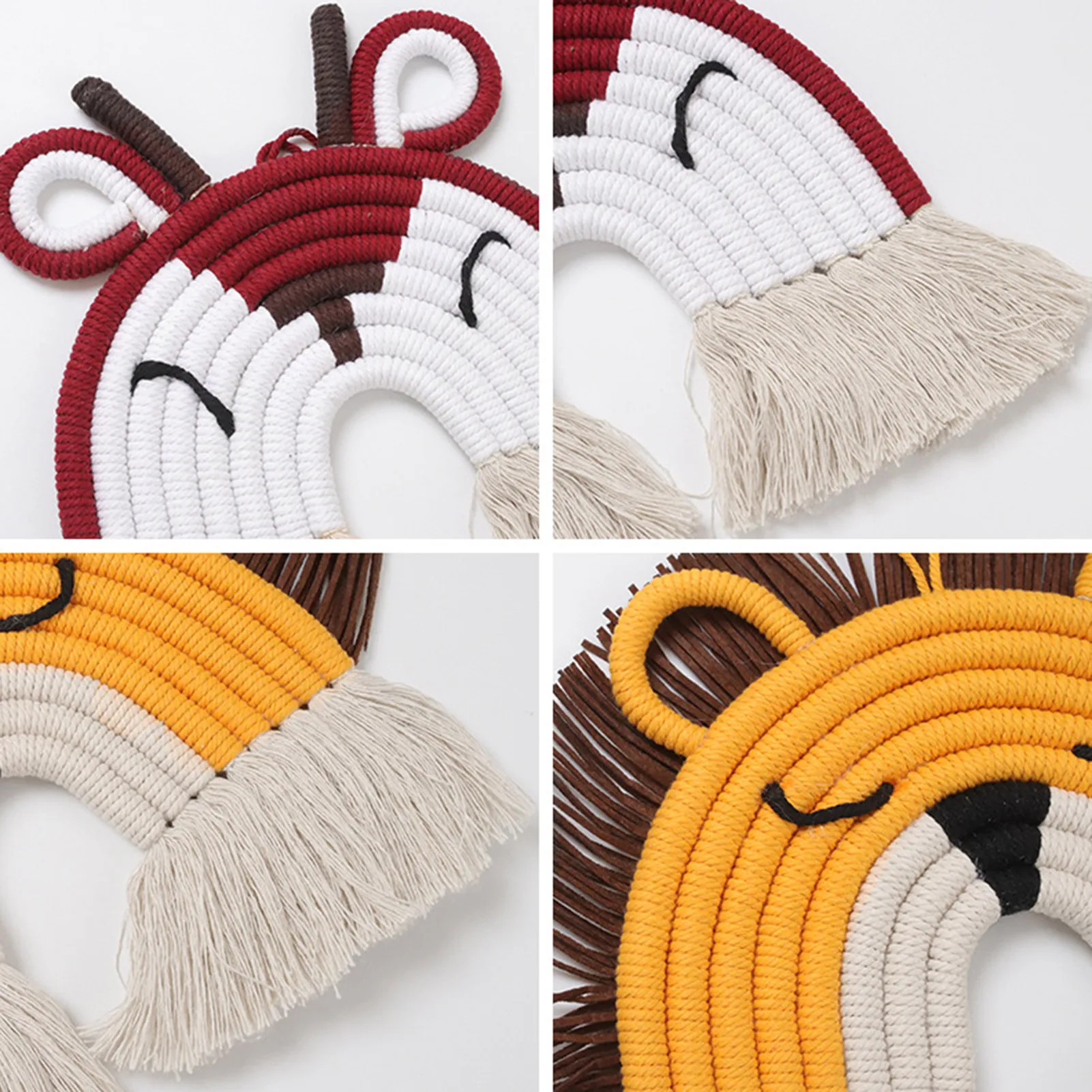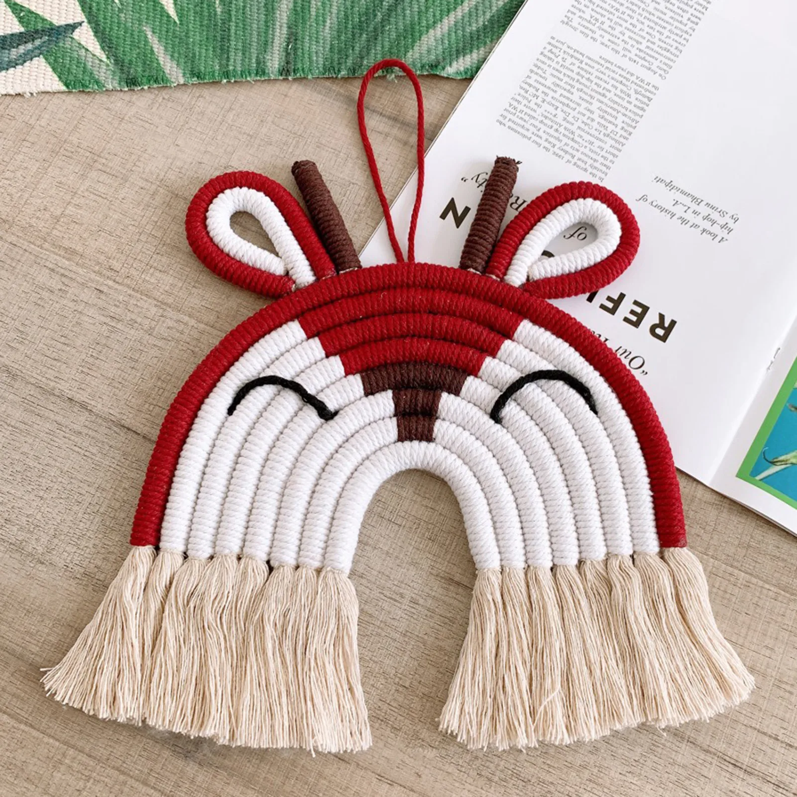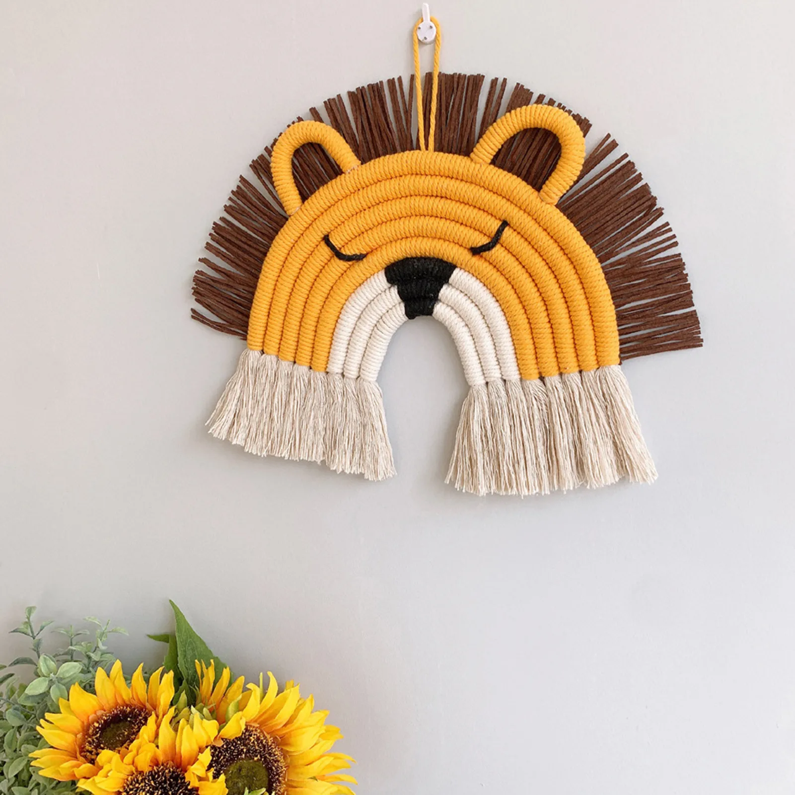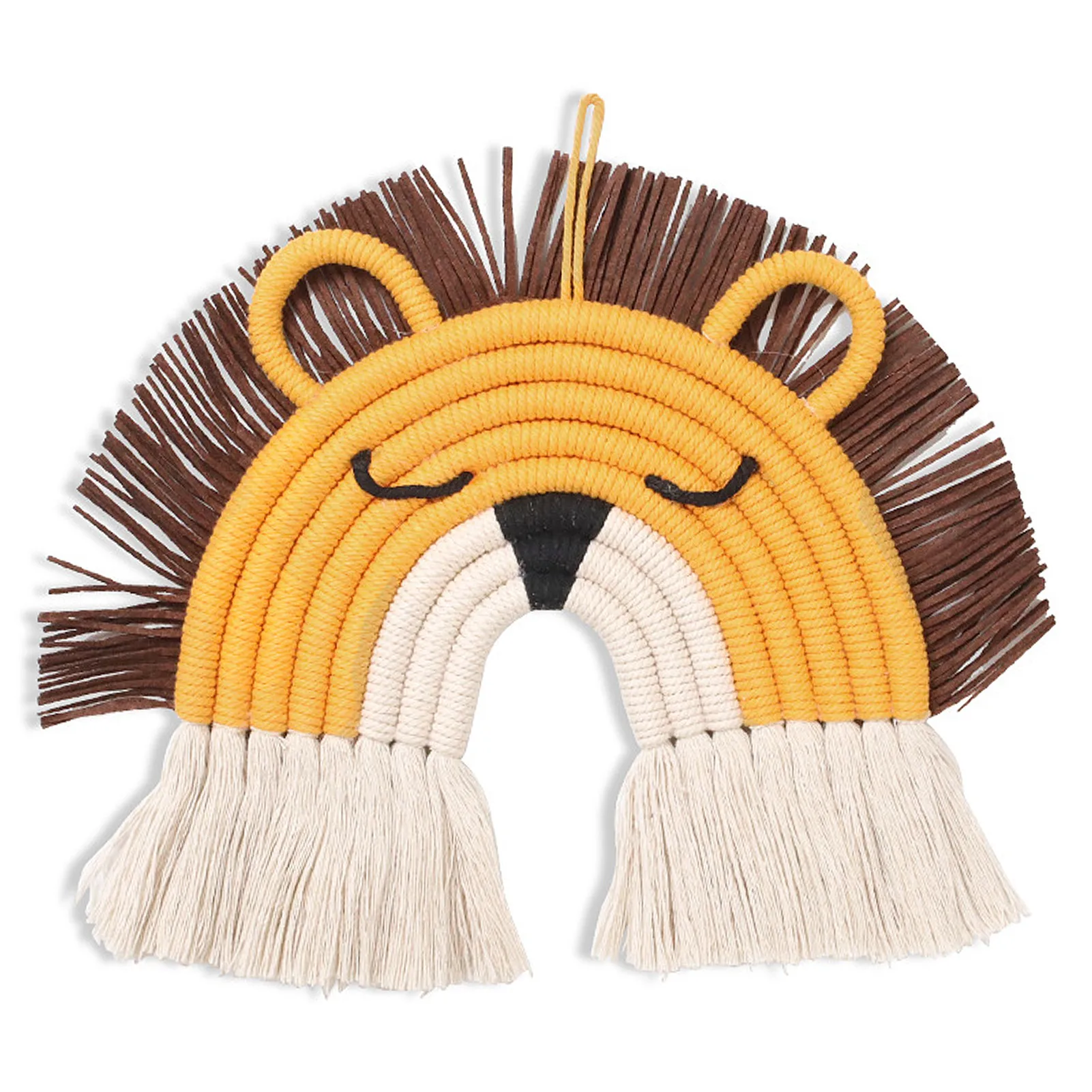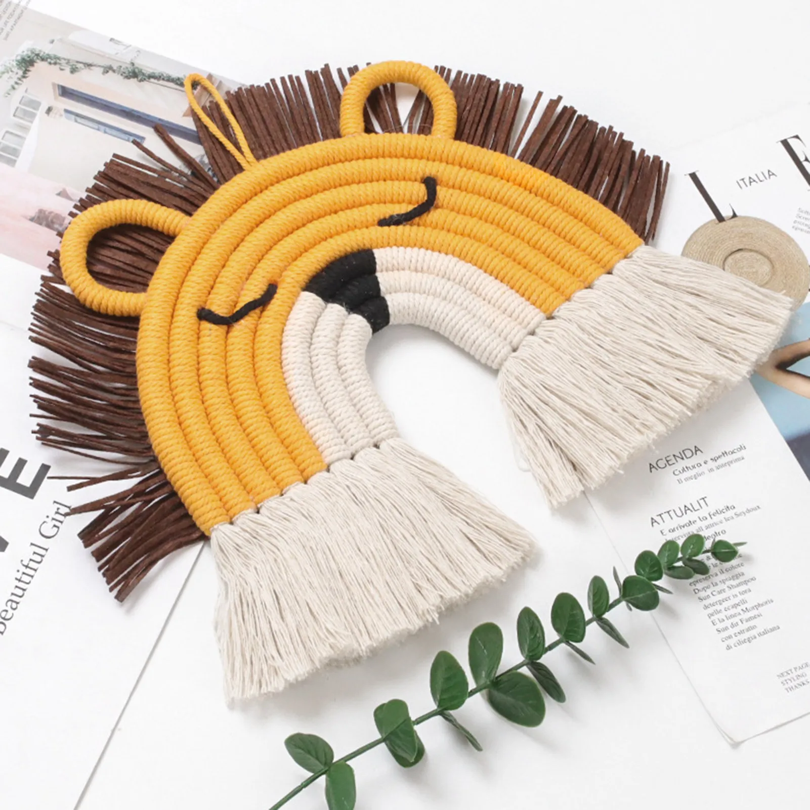 Радужный олень Лев ручной работы тканая хлопковая Веревка Декор детской комнаты подвесной кулон