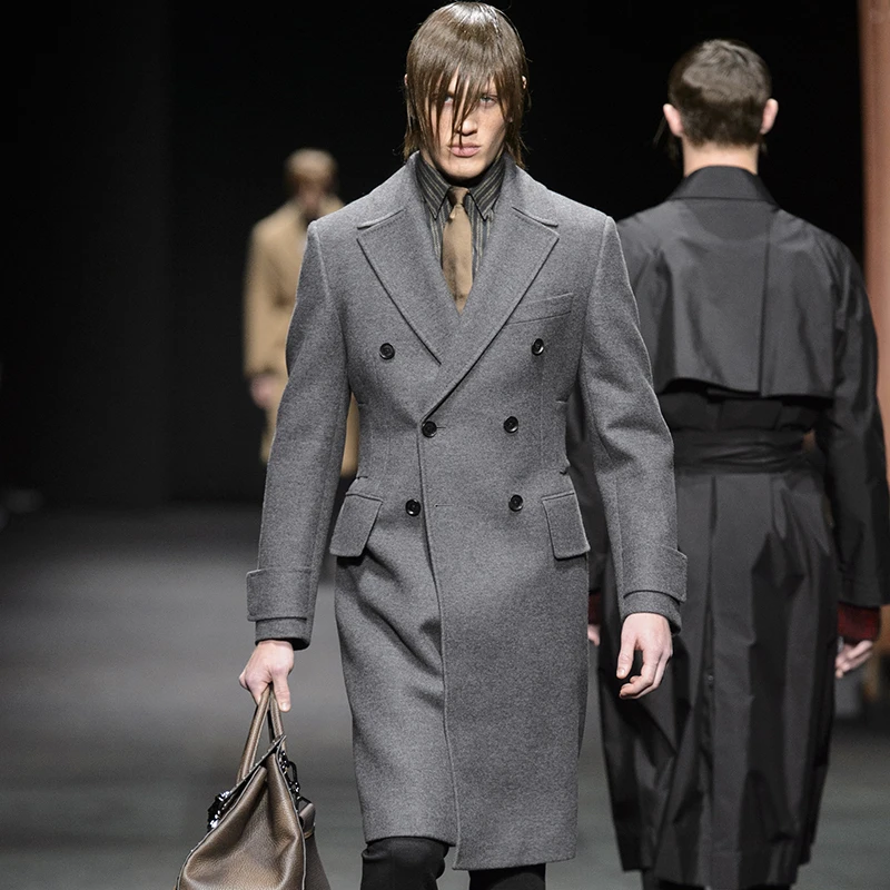 INCERUN мужское шерстяное пальто зимнее Длинная ветровка 2020 выше колена высокое
