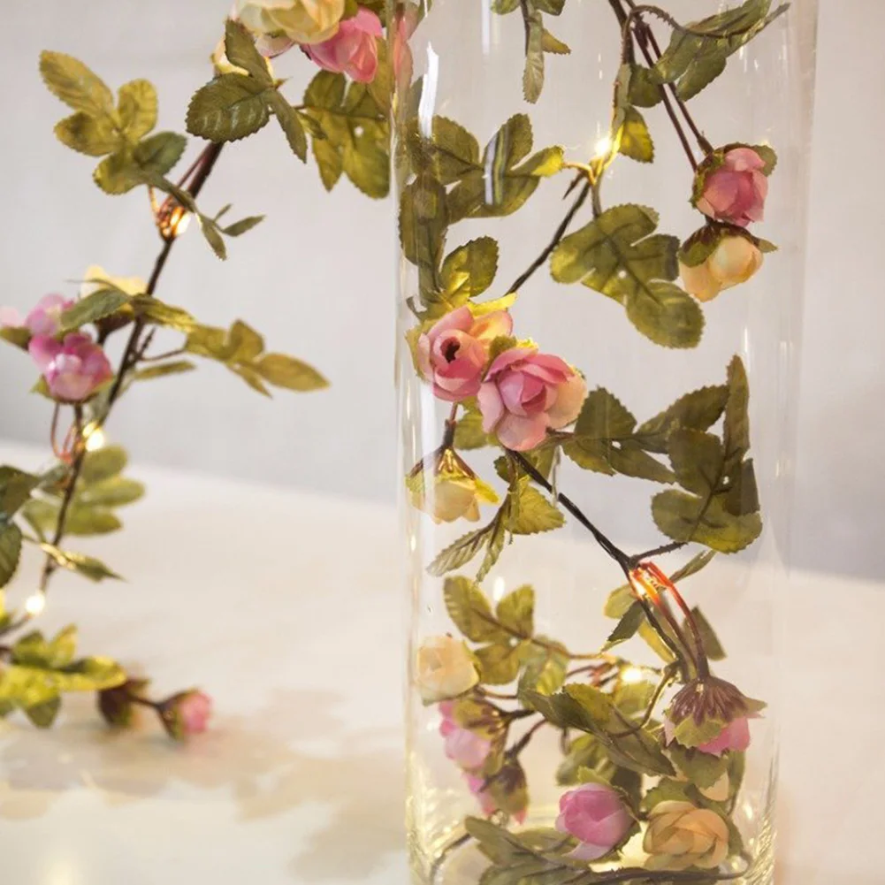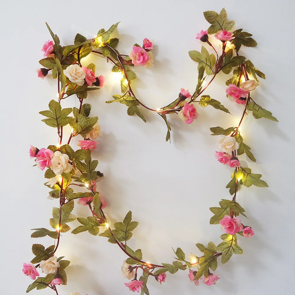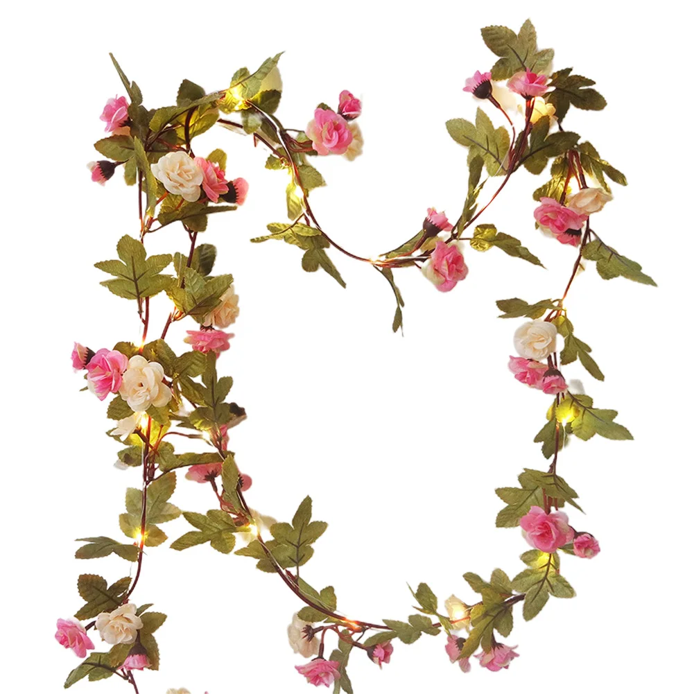 2,2 м имитация цветка розы гирлянда с медным светодиодный светильник для украшения дома