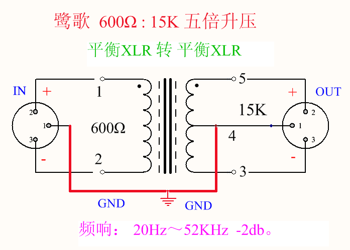 600Ω:15K 5 times boost calculation: The secondary 15K divided by the primary 600Ω and the open root is equal to 5, that is, 5 times boost amplification, which is also suitable for calculation of other impedance transformers.