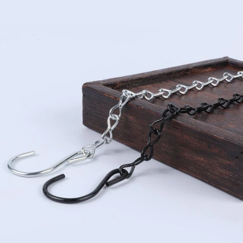 The hanging chains are commonly applied for hanging bird feeders, plant baskets, bird houses, flower pots, etc.