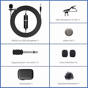 SYNCO Lav-S6E петличный микрофон со встроенным 2 микрочипы, особенности с идентификацией и гибкие соединения между устройствами с 3,5 мм TRRS и 3,5 мм TRS аудио вход. Идеально подходит для любых 3,5 мм адаптер переменного тока, подключи и играй!