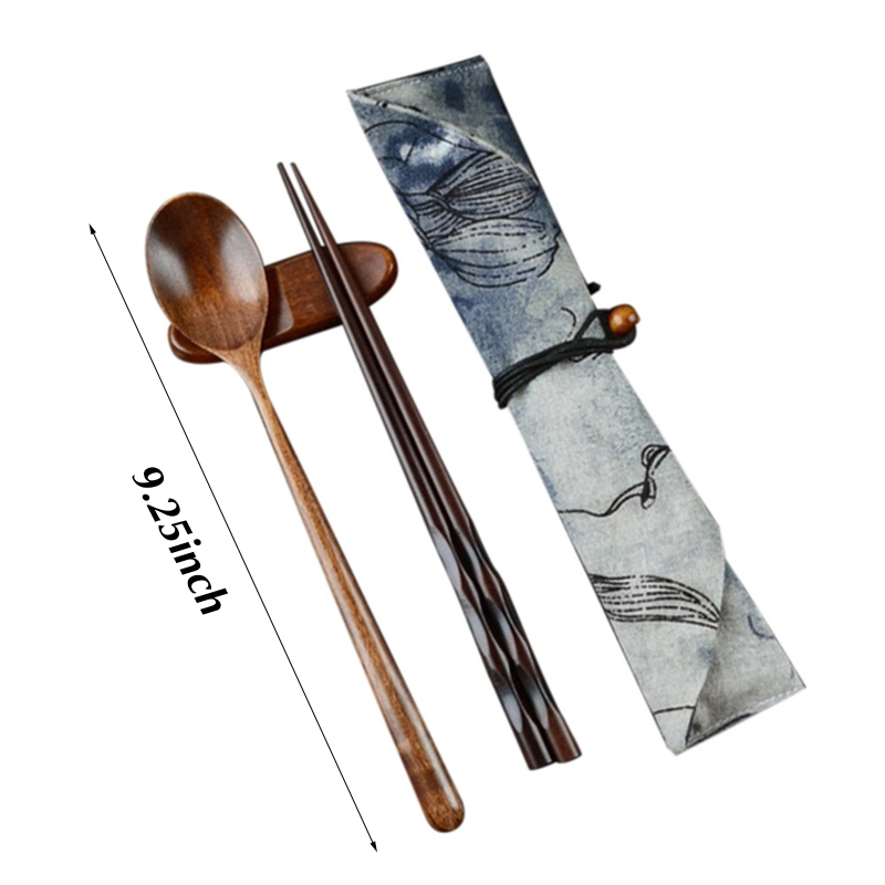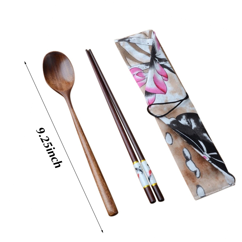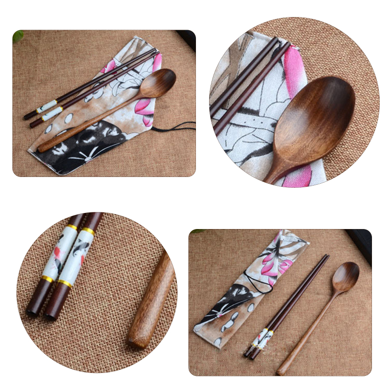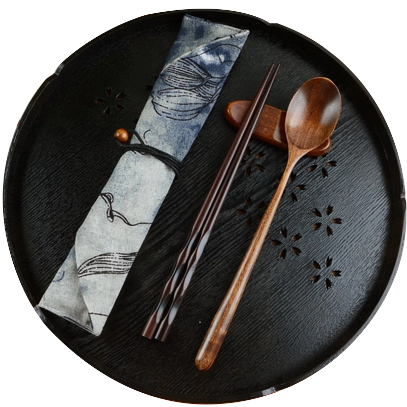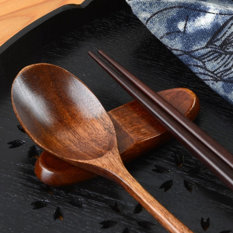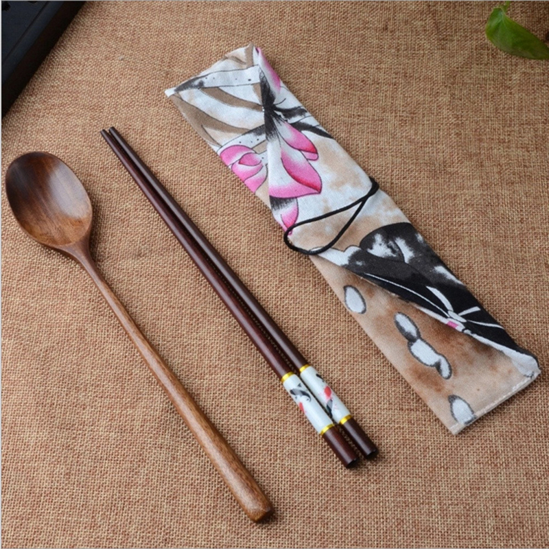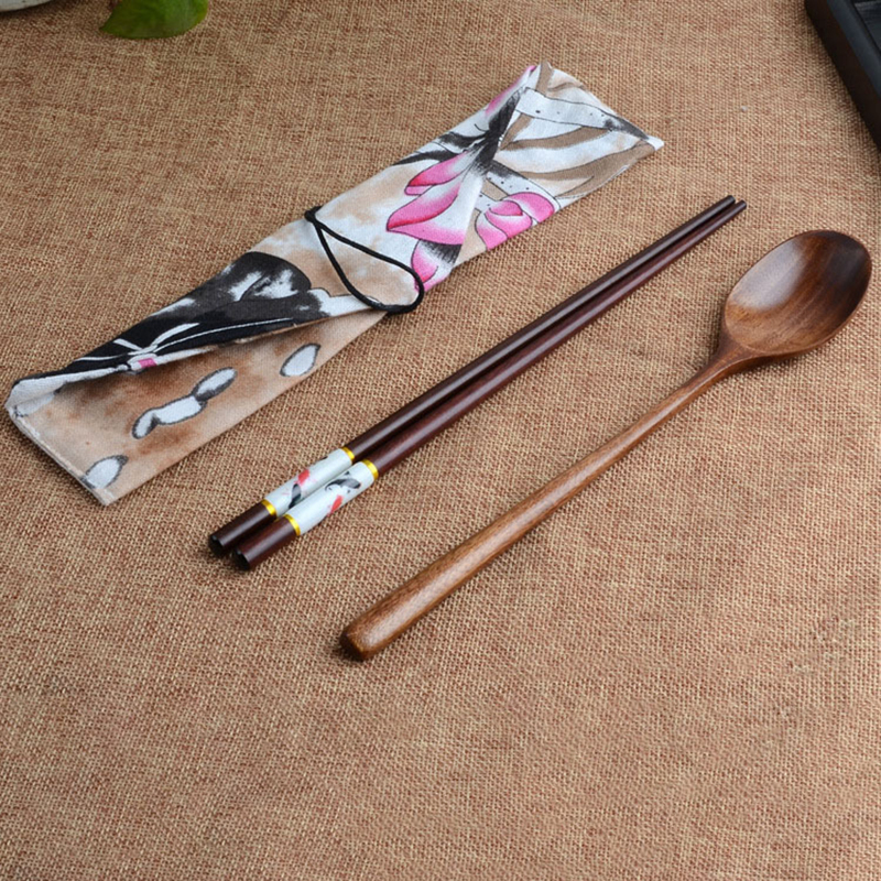 Палочки для еды ручной работы из натурального дерева, набор из 1 ложки и 1 ложки, бамбуковые Карманные Подарочные Наборы