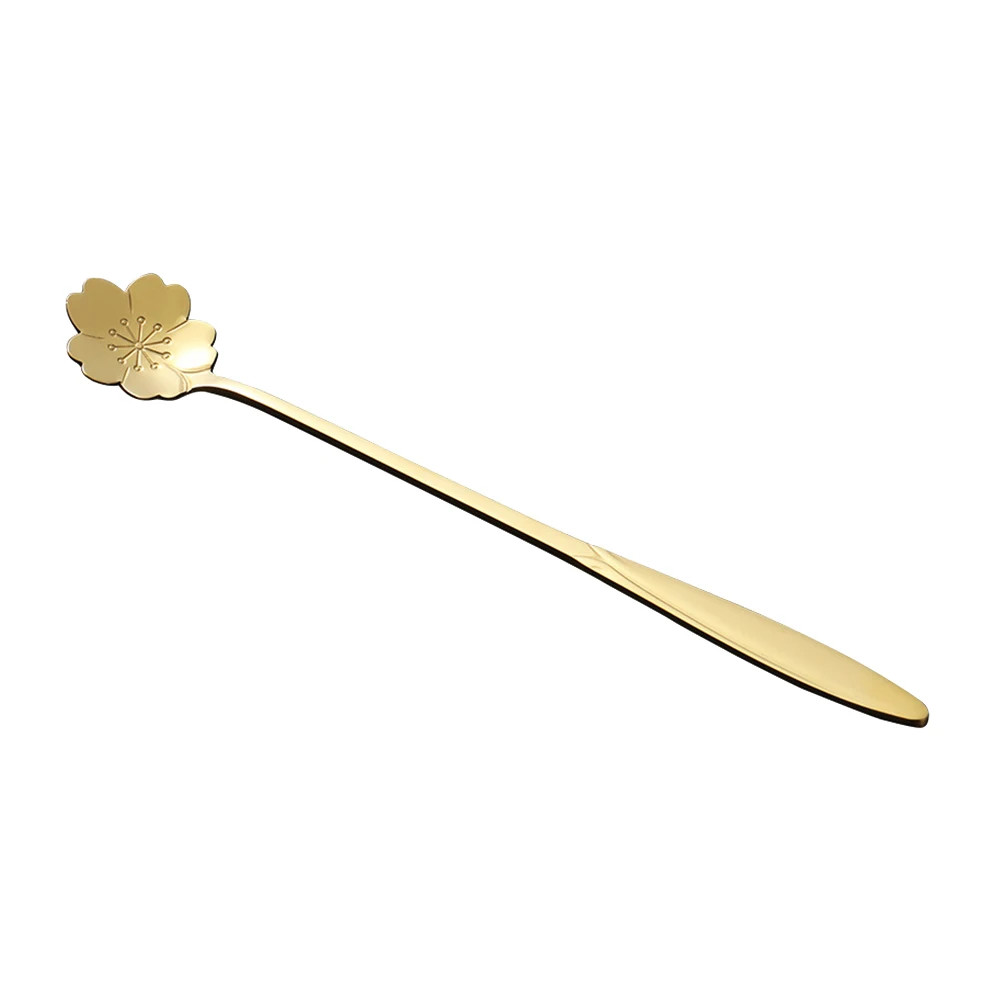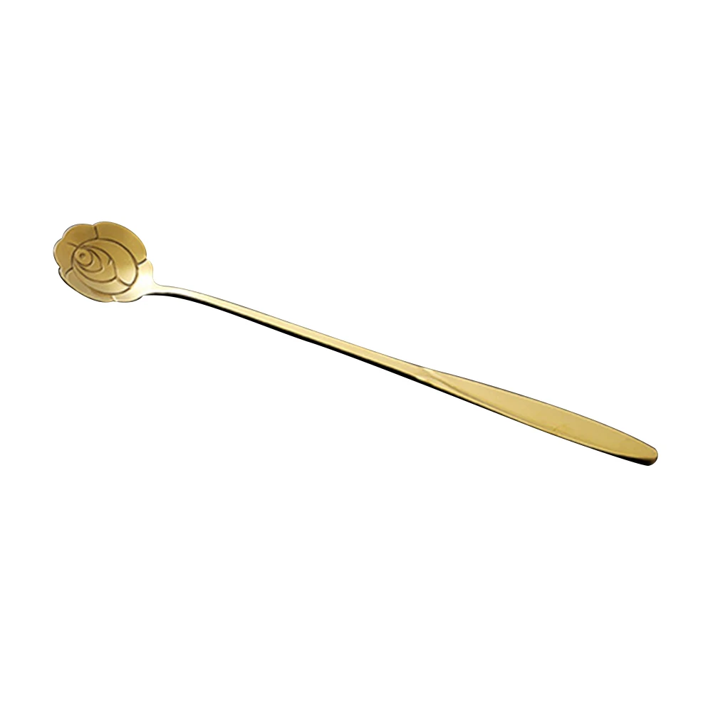 8 шт цветы дизайнерские шлепанцы Цвет золотой ложки с длинной ручкой для десерта