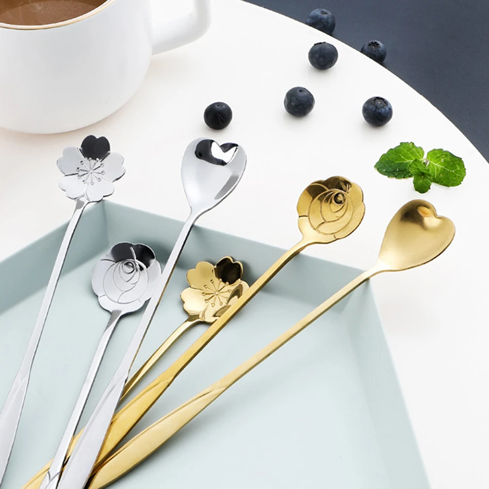 Нержавеющая сталь длинная ручка цветок Сердце мороженое Десерт кофе смешивания ложка