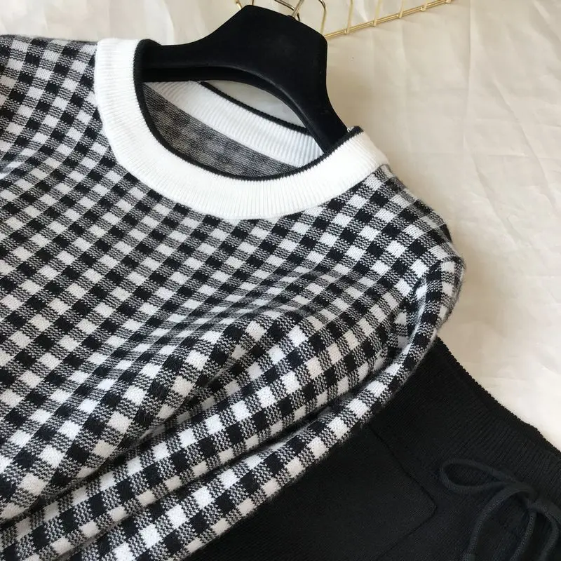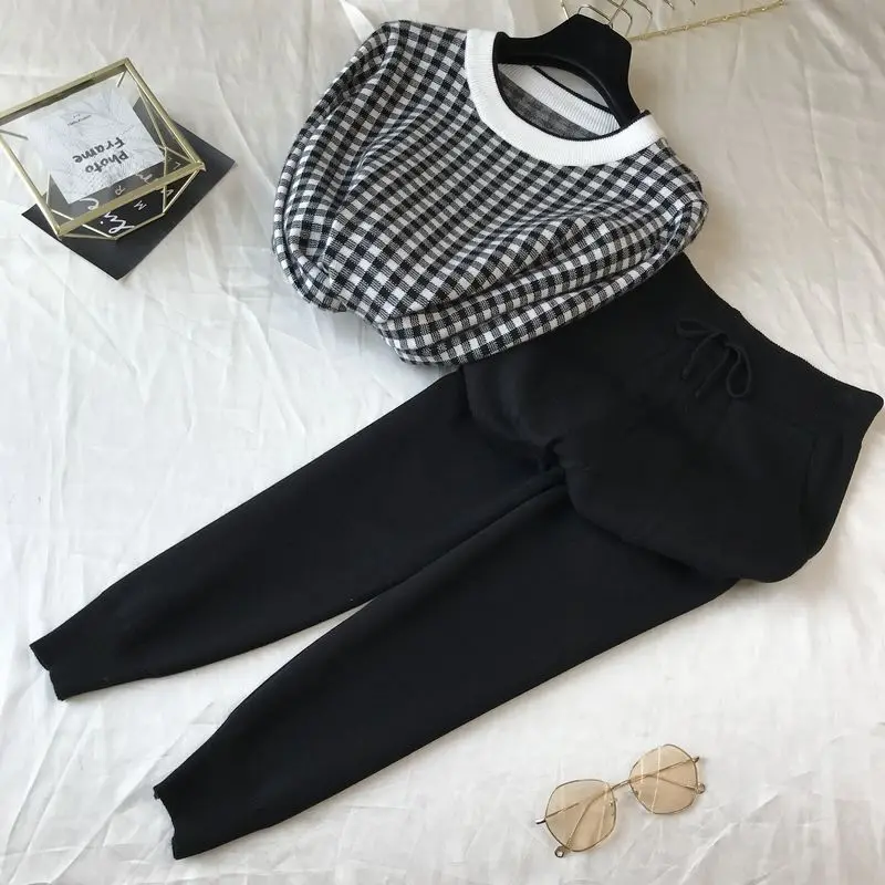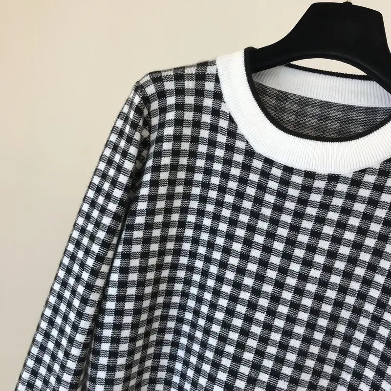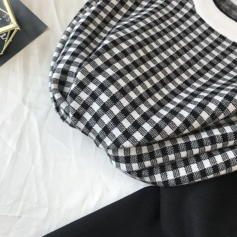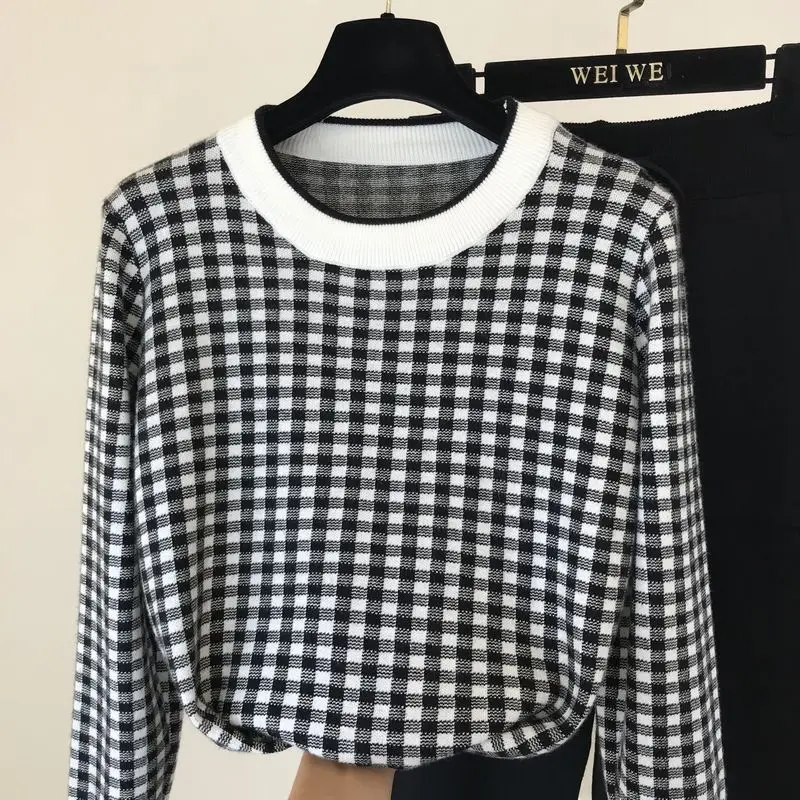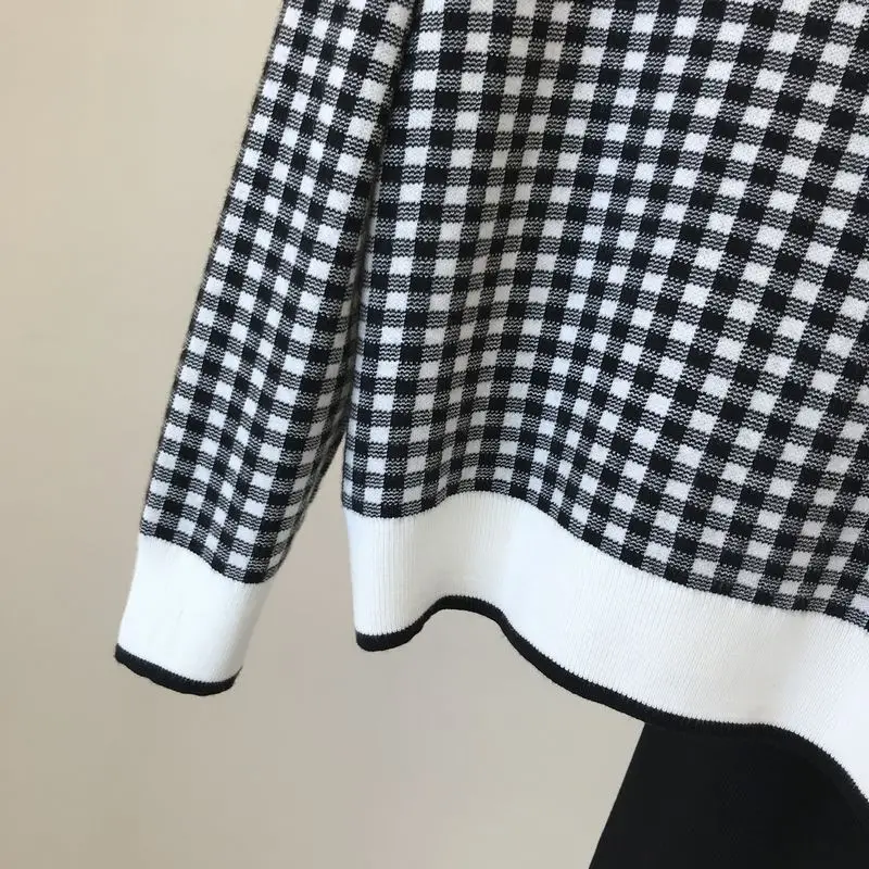Женский свитер в литературном стиле с рисунком гусиные лапки осень 2020 Новый