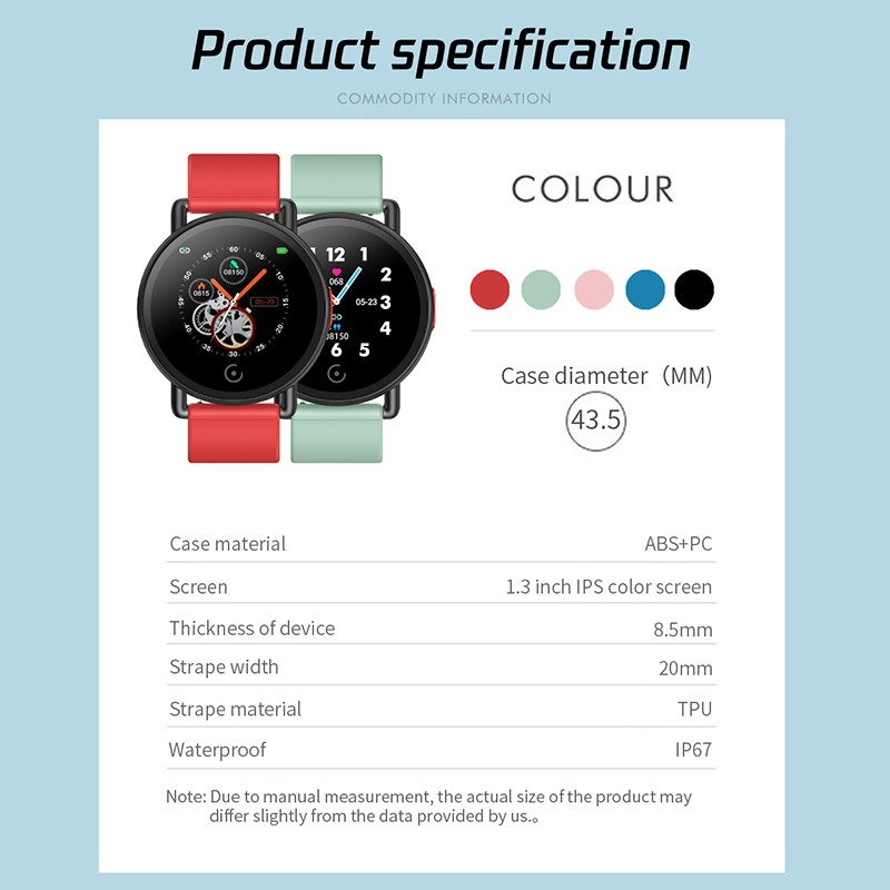 Параметры продукта: Версия Bluetooth: 5.0BLE (низкое энергопотребление) Водонепроницаемость: IP68 Применимые модели: Android 4,4/IOS9.0 и выше Применимое приложение: "Gloryfit" Экран: 1,3-дюймовый TFT Full-Цвет IPS Дисплей Режим отображения: подъем запястья и сенсорный дисплей Тип батареи: полимерная литиевая батарея Емкость аккумулятора: 160 мАч Срок службы батареи: около 5-7 дней при нормальном использовании Способ зарядки: Магнитный зарядный кабель Время зарядки: около 2 ч Основной чип управления: микропроцессор RTL8762CK Датчик движения: STK8321 (трехосевой датчик ускорения) Датчик сердечного ритма: VC31 Материал: ТПУ + ПК + ABS Материал корпуса: поликарбонат Материал браслета: ТПУ (съемный и сменный Браслет) Общая Длина изделия: 260 мм Длина изделия регулируется: 180-235 мм Размер браслета (Д X Ш X В): 260 мм * 20 мм * 12 мм Интерфейс пользовательского интерфейса браслета, библиотека текстовых букв поддерживает 13 языков, таких как упрощенный китайский, Традиционный китайский, английский, немецкий, французский, японский, корейский, испанский, итальянский и т. Д. Поддерживаемые языки приложения: русский, индонезийский, немецкий, итальянский, чешский, японский, французский, польский, упрощенный китайский, Традиционный китайский, английский, португальский, испанский, арабский, корейский, голландский, хинди язык Основная функция Мониторинг здоровья: мониторинг температуры тела, динамический и статический пульс/измерение кровяного давления/кислорода, Автоматический мониторинг сердечного ритма в течение дня, режим работы, управление сном, подсчет шагов, Мониторинг потребления калорий, Запись пробега, напоминание о сидячем положении Другие функции: напоминание о звонках и сообщениях, Push, отображение времени, напоминание о будильнике, управление музыкой, отказ от звонков, Удаленная камера, замена циферблата, режим не беспокоить, WeChat спорт, информация о погоде, поднимите руку, чтобы осветить экран, обновление OTA Напоминание о тревоге: напоминание о вибрации Хранение данных: 7 дней детальных записей упражнений, 23 дня в день Рабочая температура: -10 °C ~ 50 °C Упаковочный лист: Умный Браслет * 1 зарядный кабель * 1 руководство * 1