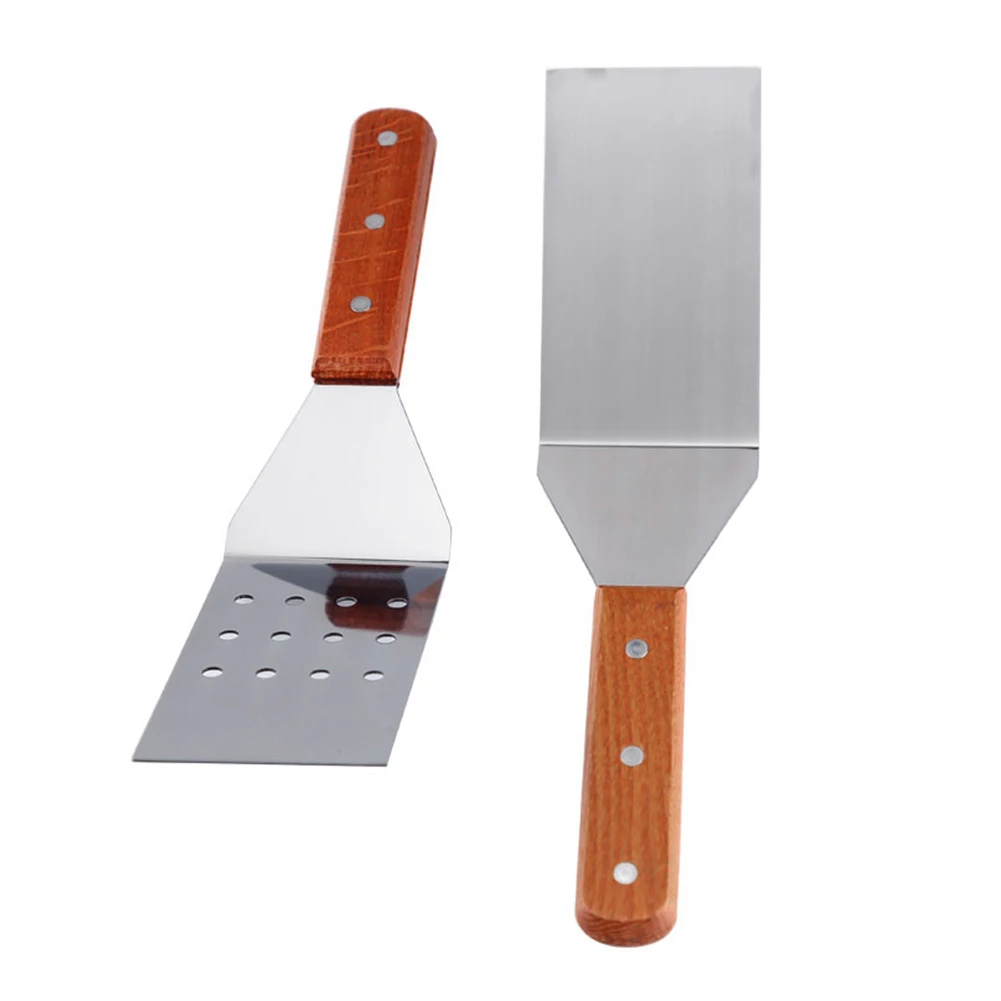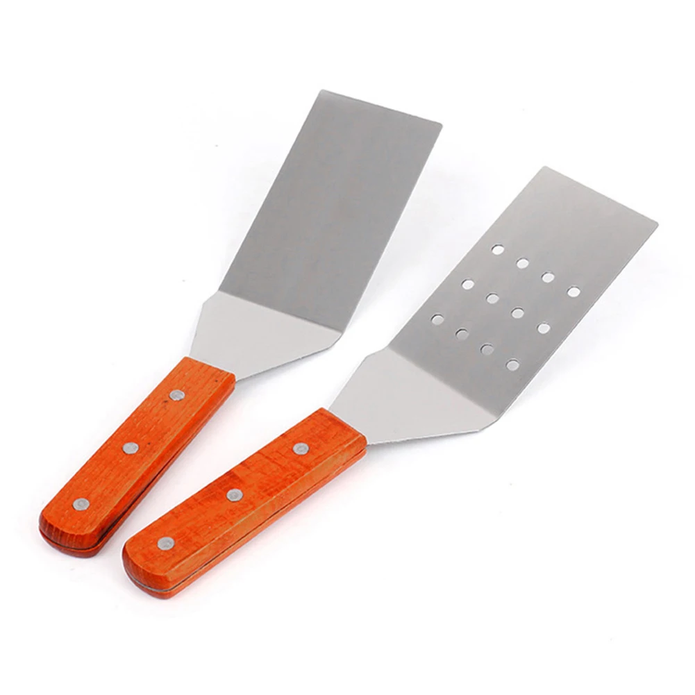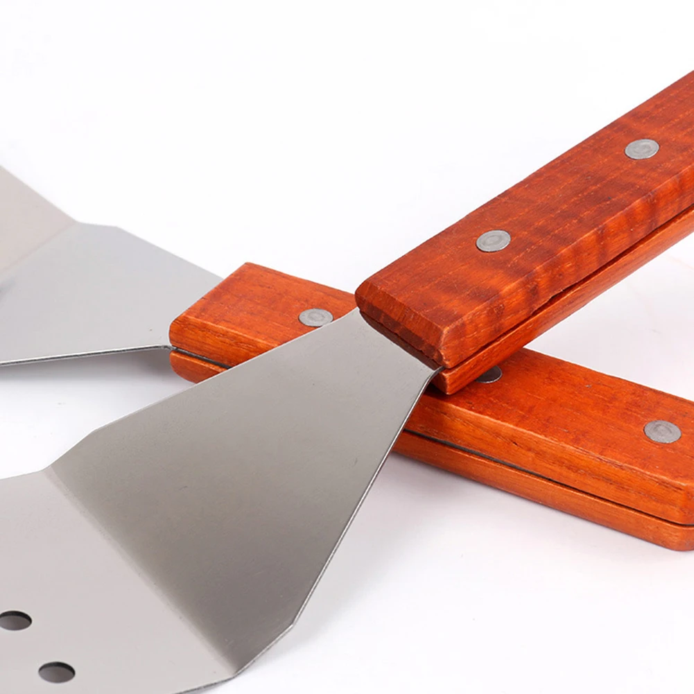 Жареная лопата из нержавеющей стали с деревянной ручкой, отличный кухонный помощник.