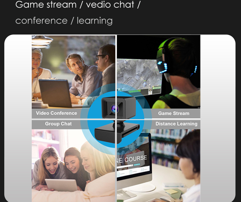 [Множественная Совместимость программного обеспечения и Различные применимые варианты] Мы знаем, что есть несколько видео-чатов программного обеспечения, которые могут удовлетворить различные потребности, поэтому мы разработали камеру для достижения ультра-широкой совместимости программного обеспечения, так что камера может быть совместима со многими популярными видео программным обеспечением (например, Skype, Zoom, Facetime, Facebook, YouTube, PotPlayer и т. Д. Вы можете легко использовать эту веб-камеру для онлайн-обучения, потоковой передачи данных в реальном времени, конференций, игр, видеозвонков и записи.