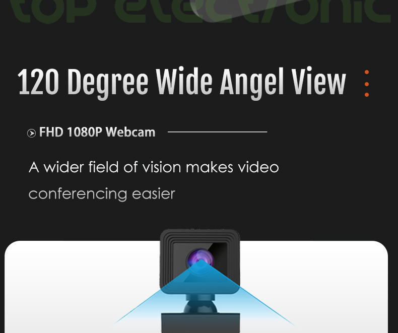 [Веб-камера USB 1080P с четкими изображениями] Веб-камера ПК оснащена объективом с разрешением full HD true 1080P. Эта сетевая камера использует передовую технологию сжатия H.264, чтобы обеспечить четкие изображения при 30 кадрах в секунду, что может обеспечить вам отличное время видео и стабильный лучший внешний вид при широком углом обзора 120 °.