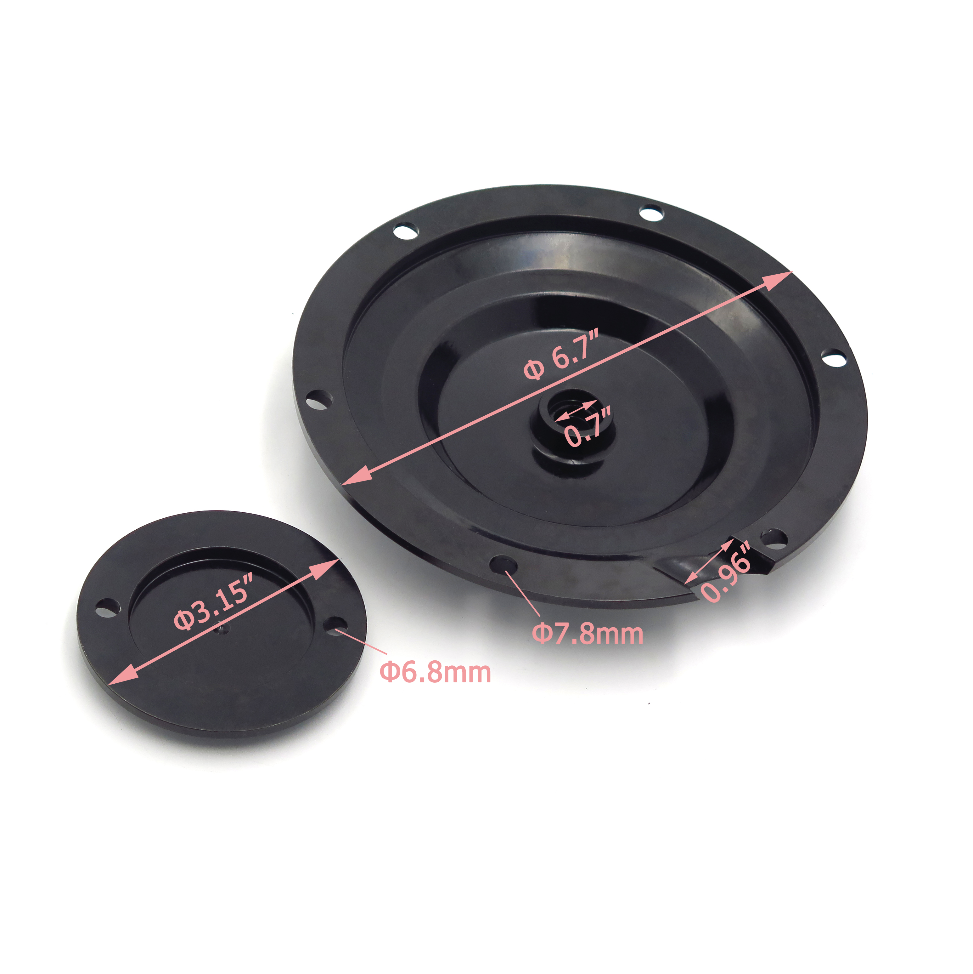 Обработанные из заготовки алюминия, эти крышки имеют куполообразные поверхности, которые отполированы и черный анодированы для богатого атласного блеска, а затем повторно обработаны, чтобы подвергать сырье алюминия.