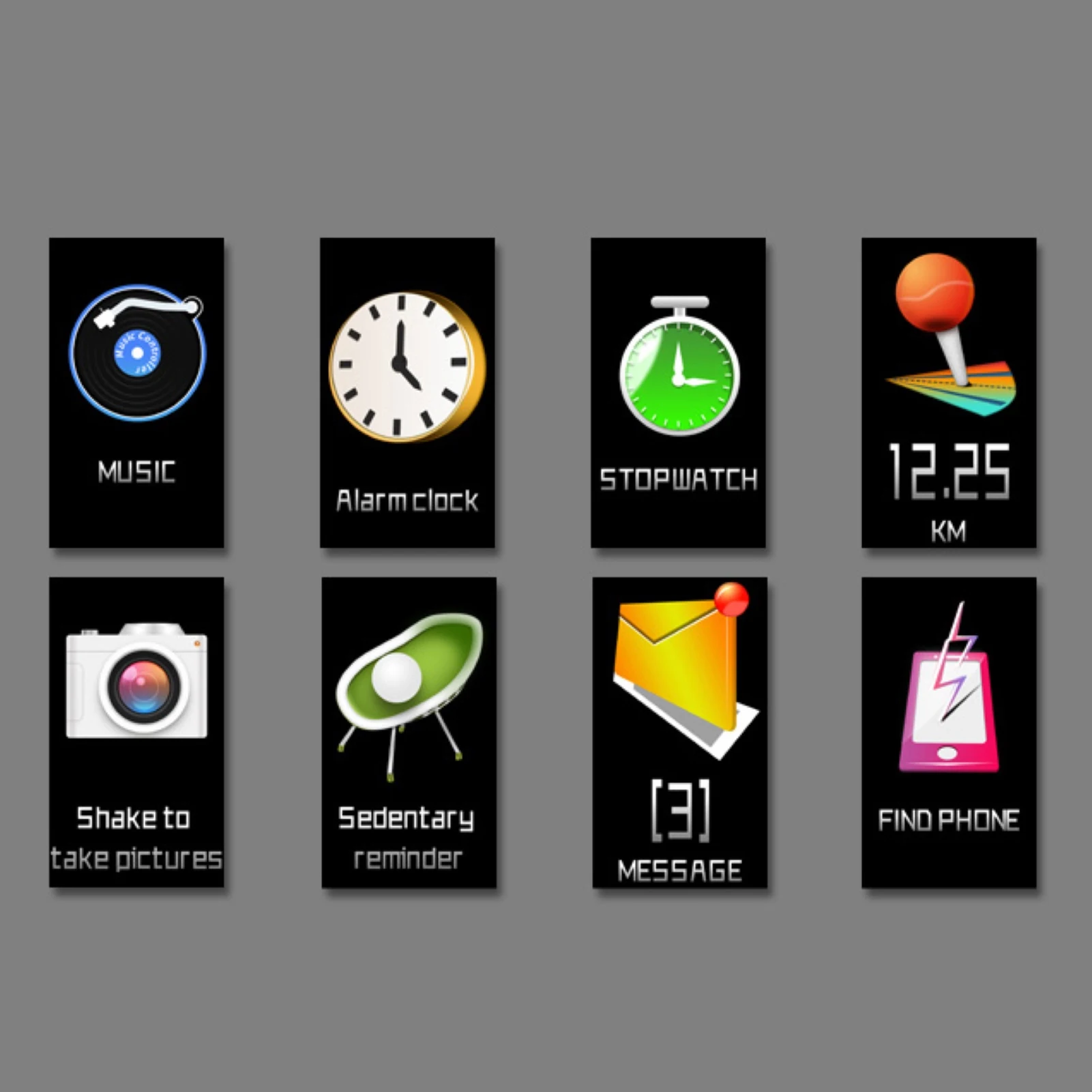 Смарт-браслет оснащен 24 часа в сутки точный сердечный ритм, мониторинг, измерять кровяное давление, мониторинг, фитнес, пройденное расстояние в милях, функция напоминания о необходимости двигательной активности, сна, sms-сообщениях, панорамирование фото и других функций.