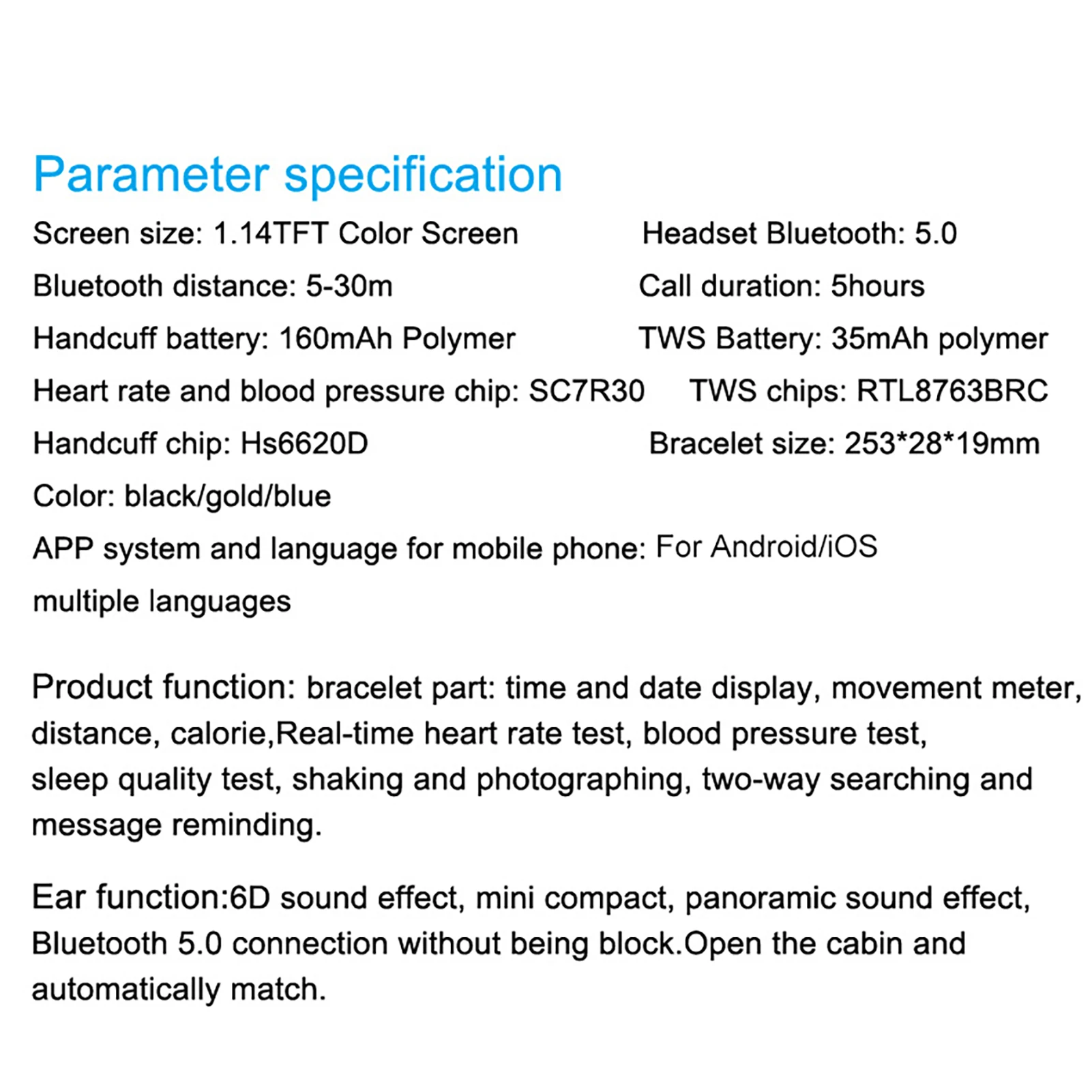 Новый T89 наушники-вкладыши TWS с Беспроводной Bluetooth наушники смарт-браслет 2-в-1 Водонепроницаемый сенсорный Управление монитор сердечного ритма подходит для ответа на звонки и спортивные часы браслет