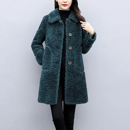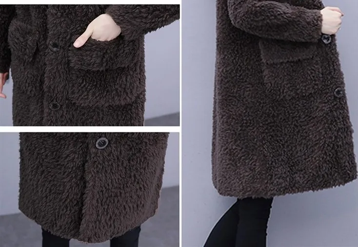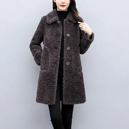 Куртка женская зимняя из искусственного меха овечьей шерсти с длинным рукавом -
