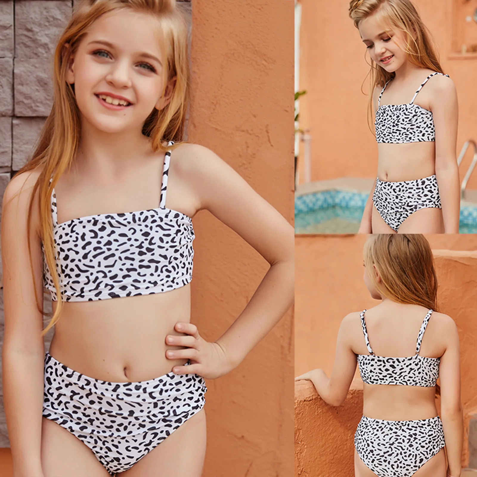 Праздничный милый комплект бикини с леопардовым принтом для девочек, купальный костюм из двух частей