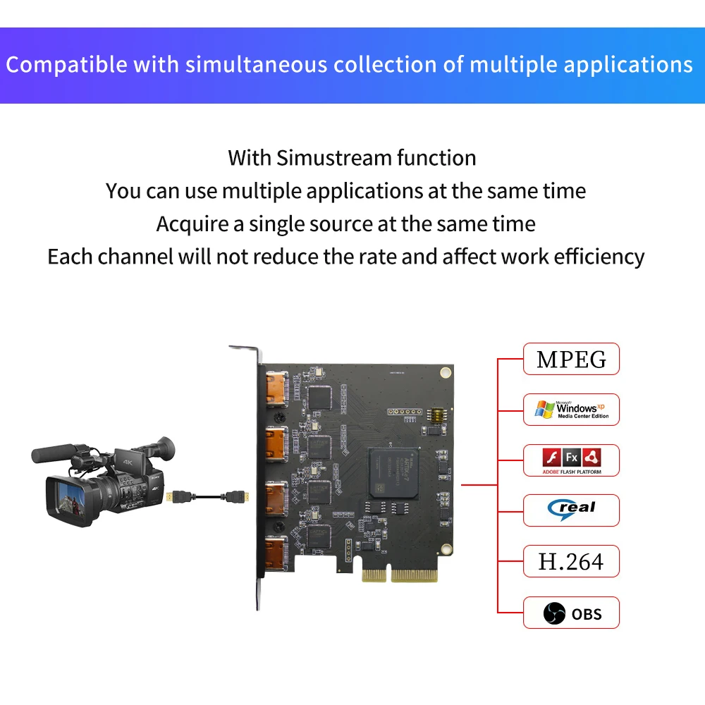 4 канала встроенной карты захвата HDMI Поддержка 4 канала HDMI для одновременного приема