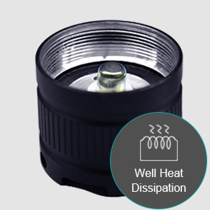 ВодонепроницаемыйIP45 защита от воды, она может выдержать большую часть экстремальных погодных условий, таких как шторм и сильный дождь. Если вы полностью под водой, это рухнет. | Новый дизайн и долговечностьКорпус из алюминиевого сплава и специальная конструкция головы делают его достаточно трудным, чтобы помочь вам, когда вы находитесь в опасном состоянии | Хорошая теплоотдачаПаз головки и алюминиевое кольцо хвоста делают батареи тесно прикасаться, что хороший продукт! |