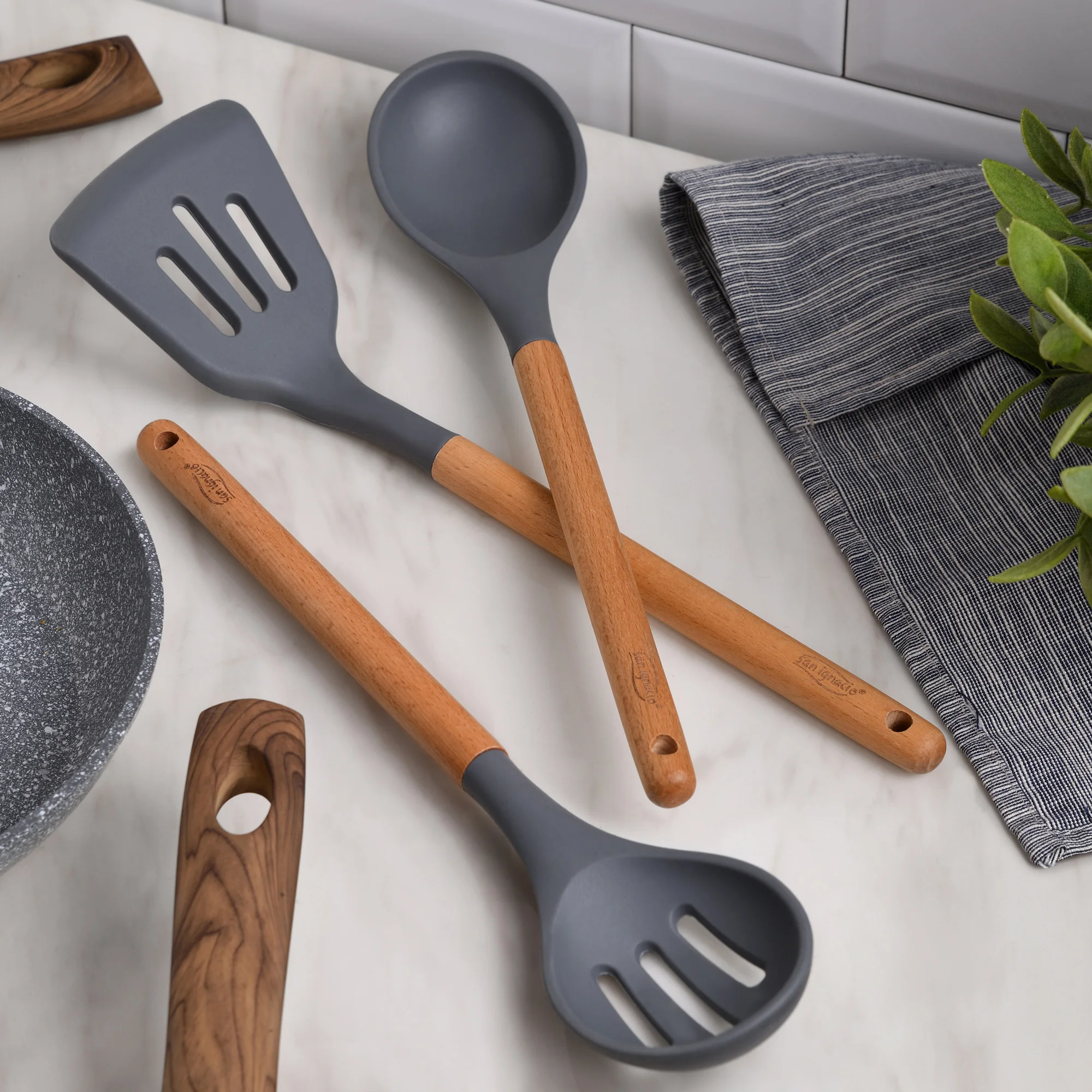 Одна штука в комплекте с двумяРучки с эффектом древесиныИ отделка soft touch, которая обеспечивает удобный и безопасный захват во время готовки.