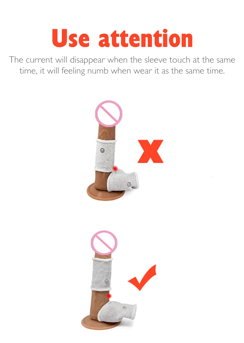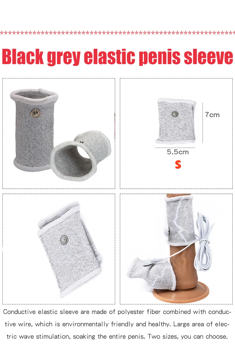 БДСМ секс с электрическим шоком кольцо на член мошонку рукав электро стимуляция терапия массажный аппарат в форме пениса удлинитель мужской мастурбации секс-инструмент