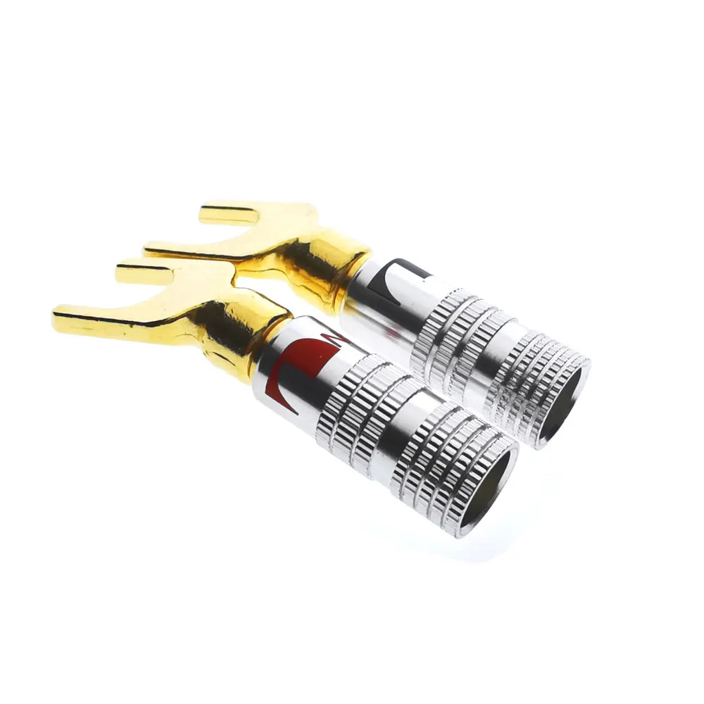 4 шт. Высокое качество Y/U Тип Латунь спикер Вилки Аудио Винт Вилка Лопата Разъем позолоченный Powercon переплет пост банан адаптер Описание товара 100% новые и высококачественные Тип: u-образный штекер-задний вход диаметр: 4 мм Лопата тип двойные винты блокировки, без пайки Подходит для большинства видов 4 мм акустических кабелей