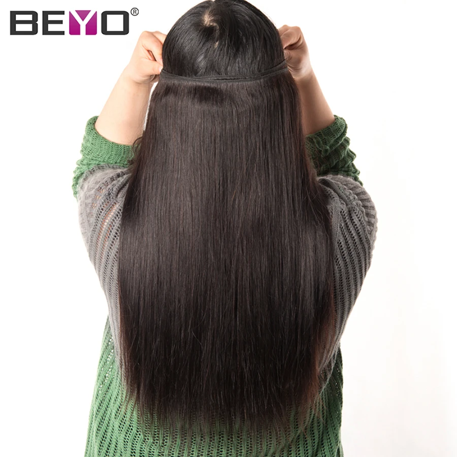 Beyo прямые пряди волос с закрытием бразильские T часть 1X4 Кружева Закрытие не Remy 100% человеческие волосы пряди с закрытием для женщин