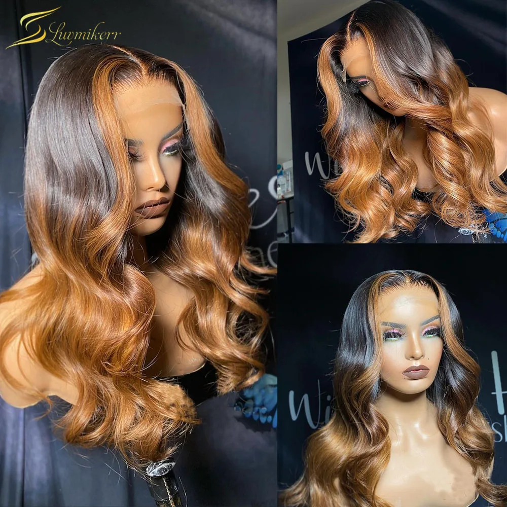Омбре медовый блонд, основной волнистый кружевной передний парик, полный свободный глубокий волнистый HD кружевной передний al парик для женщин preprucked 30 дюймов 250 плотность