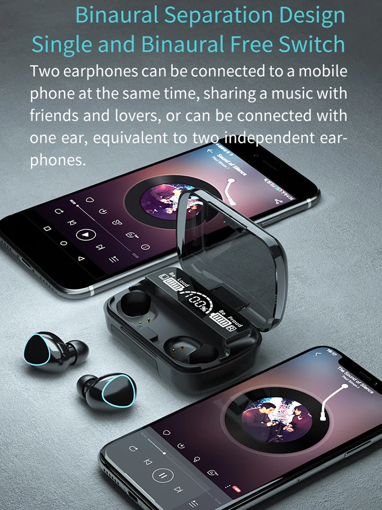 Название товара: беспроводные наушники Материал: АБС Версия Bluetooth: 5,1 Емкость одного уха: 50 мА Емкость зарядного устройства: 2000 мА Автоматическое отключение: Поддержка Автоматическое Сопряжение: Поддержка Дальность передачи:>10 м Время звонка: 4-5 ч Время воспроизведения: 4-5 часов Водонепроницаемость: IPX7 Система поддержки: все устройства Bluetooth и мобильные телефоны