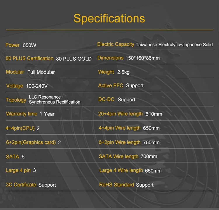 Great Wall PC блок питания PSU с истинным номиналом 650W 80PLUS GOLD ATX блок питания 12V Max 750W Полный модульный