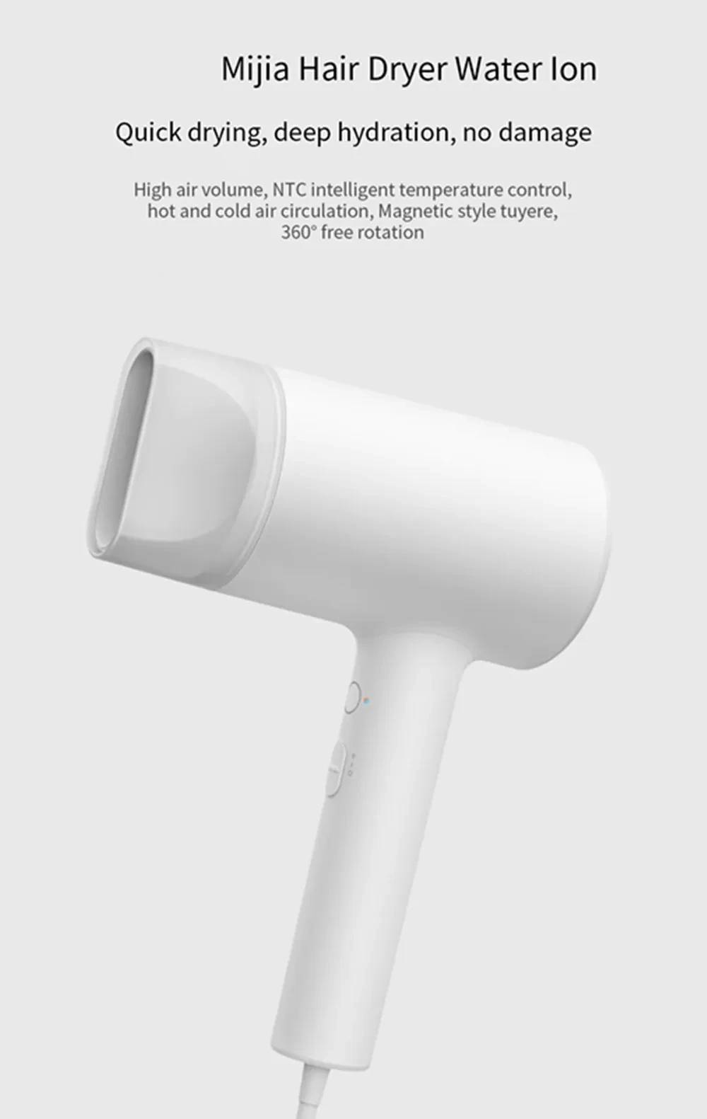 Вы ищете идеальный фен? Этот электрический фен Xiaomi Water Ion станет отличным выбором для вас! Он поставляется с большим объемом воздуха и ионами воды, что позволяет быстро высушить волосы, одновременно придавая волосам глубокий увлажняющий эффект. С этим феном вы легко сможете иметь самые разные стили!
