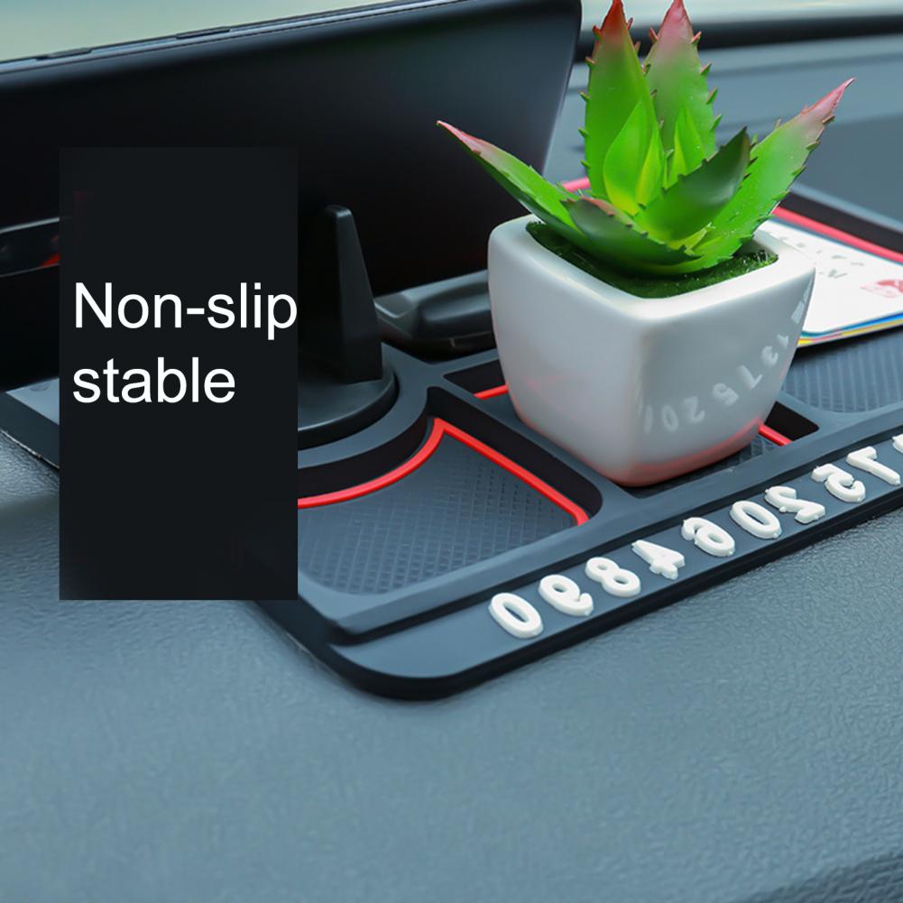 This storage mat is multifunctional, which can place small gadgets, support mobile phone stably, and contains a temporary parking card.