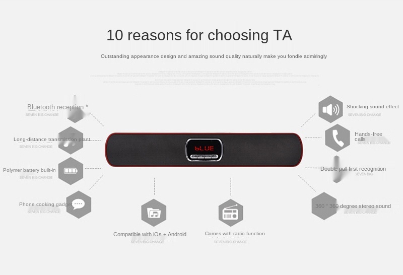 Посылка: BluetoothДинамик, USB кабель для зарядки, аудио кабель, мобильный телефон стойка, стойка поддержки, цветная коробка упаковка